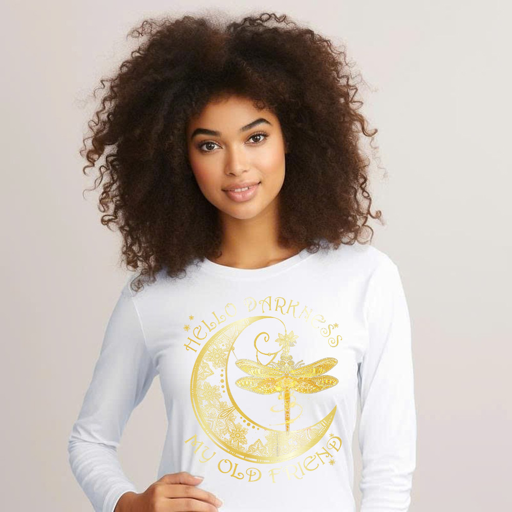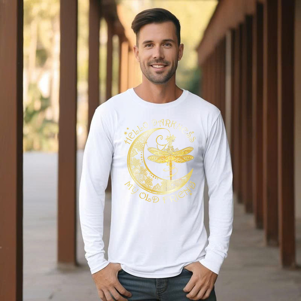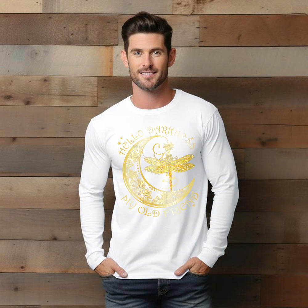Hello Darkness My Old Friend Shirt Dragonfly Moon Graphic Long Sleeve Shirt Gift For Men.