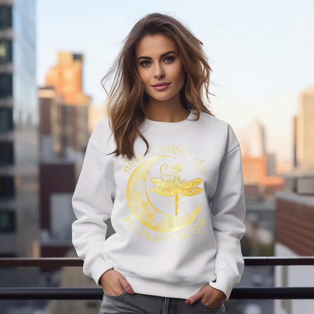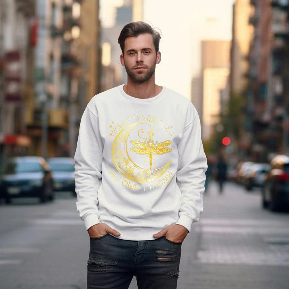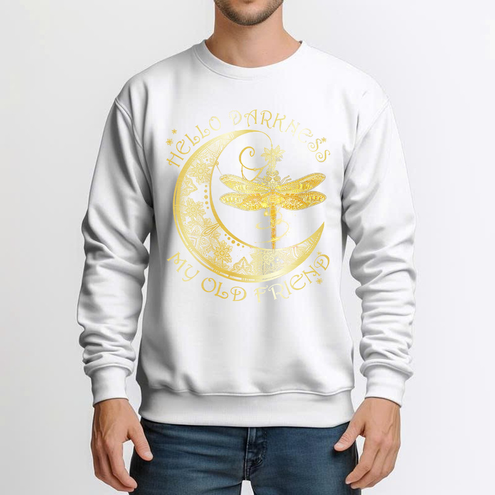 Hello Darkness My Old Friend Shirt Dragonfly Moon Graphic Sweatshirt Gift For Men.