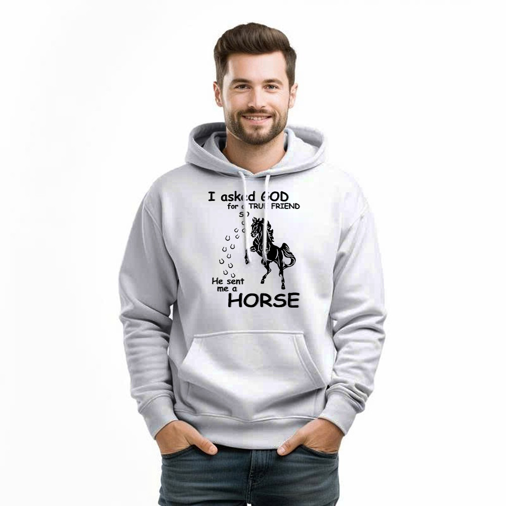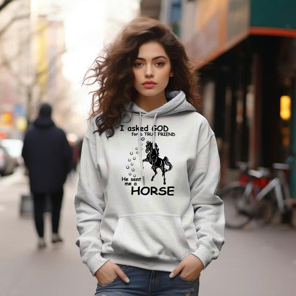 Horse Hoodie I Asked God For A True Friend Graphic Clothing Horse Enthusiast Gifts.