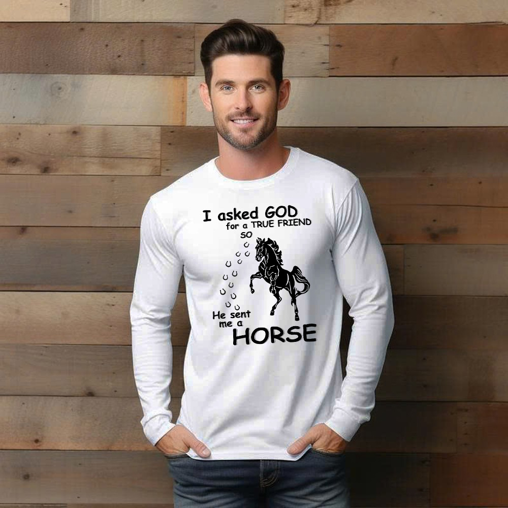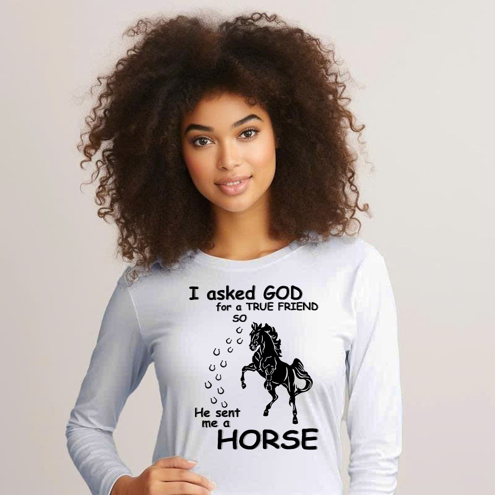 Horse Long Sleeve Shirt I Asked God For A True Friend Graphic Clothing Horse Enthusiast Gifts.