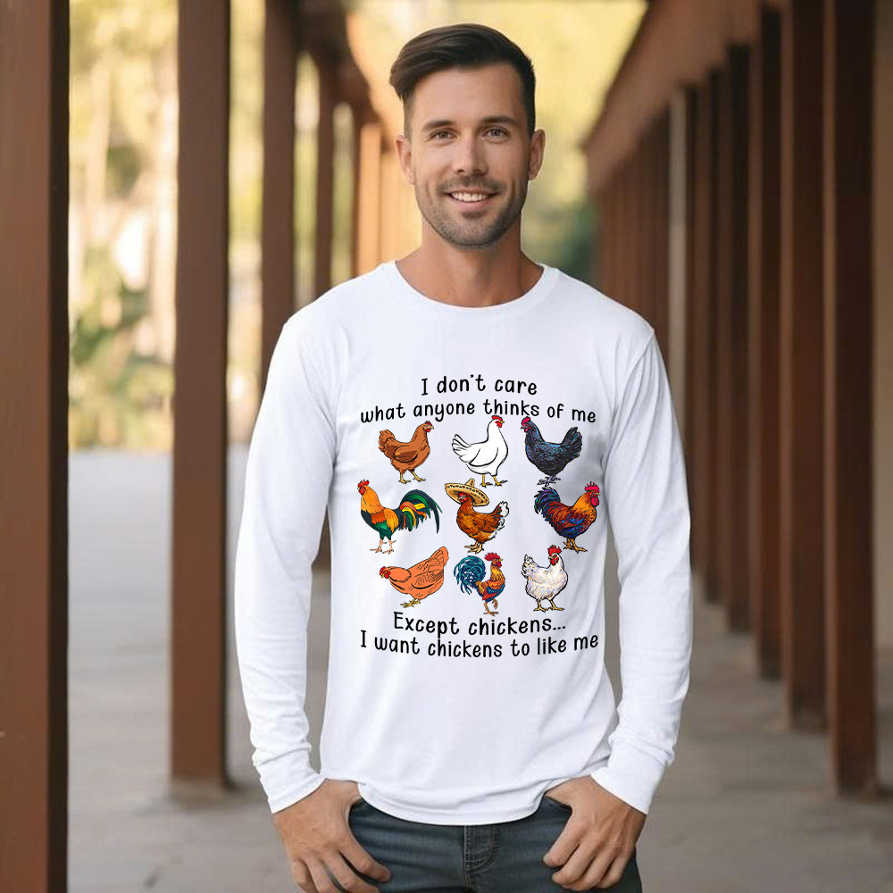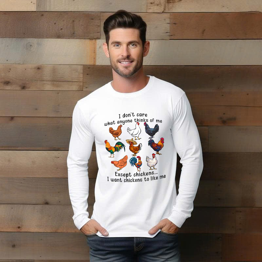 I Don’t Care What Anyone Thinks Of Me Except Chickens Long Sleeve Shirt Chicken Farm Fun Tees Gift For Dad.