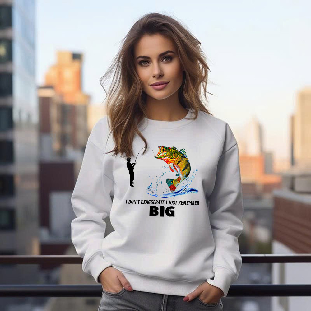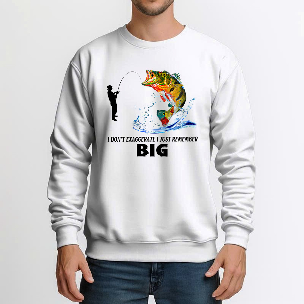 I Don’t Exaggerate I Just Remember Big Shirt Funny Humor Fisherman Sweatshirt Best Gifts.