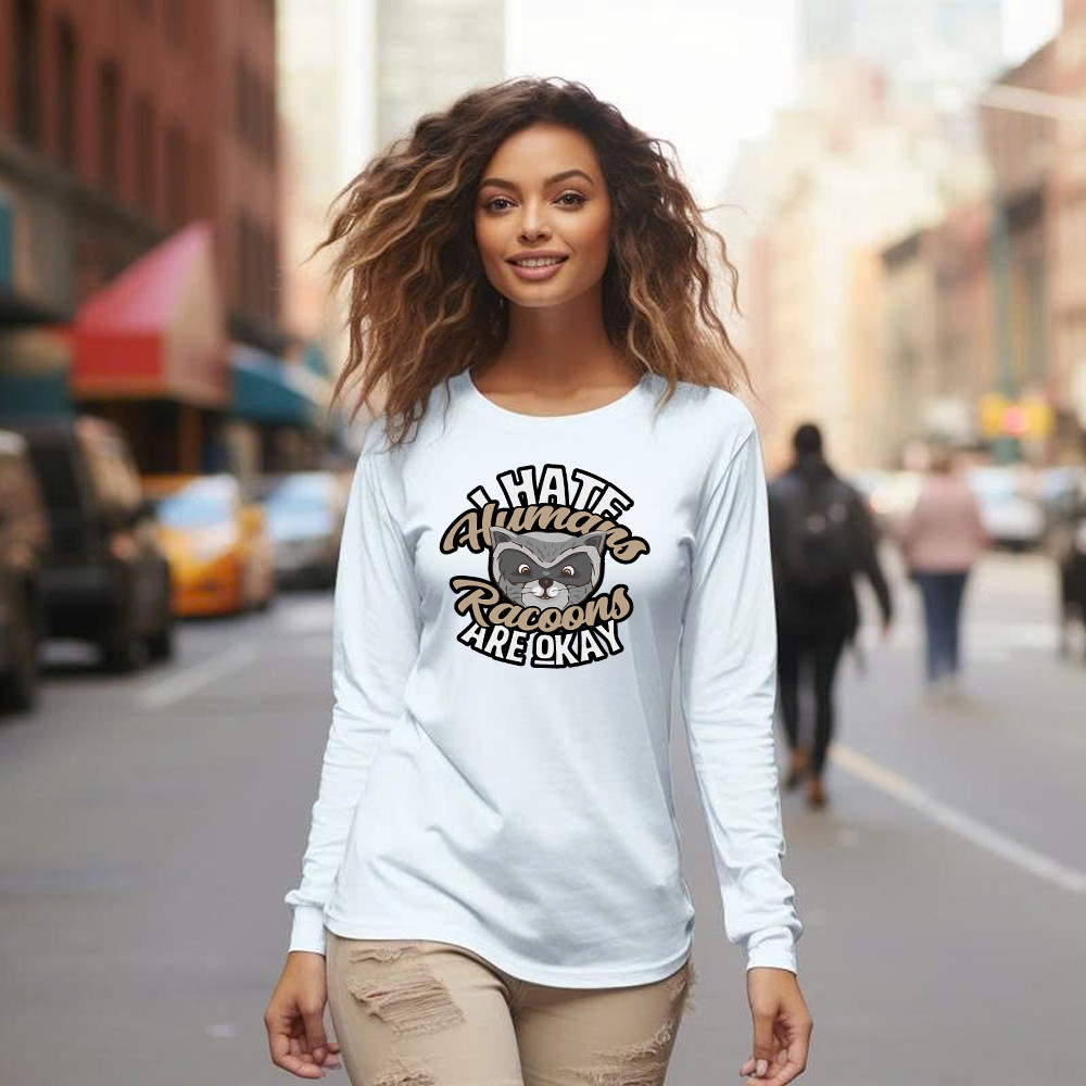 I Hate Human Racoons Are Okay Long Sleeve Shirt Funny Sayings Themed Gifts For Raccoon Lovers Rivonaprint