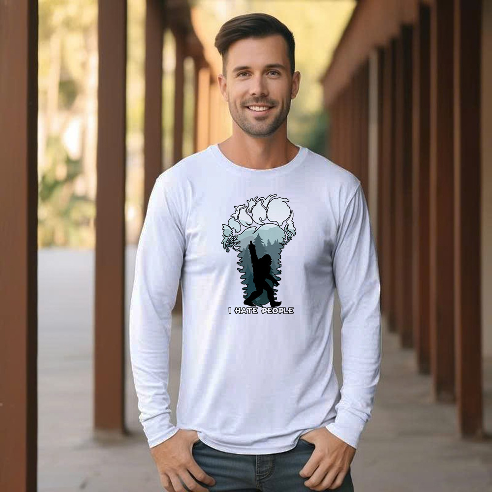 I Hate People Shirt Bigfoot Footprint Graphic Long Sleeve Shirt Fun Gift For Friend.