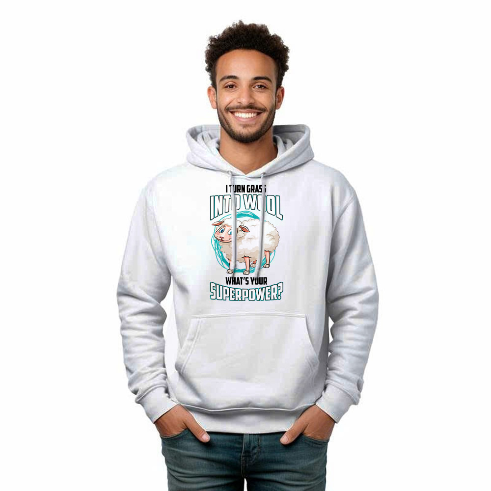 I Turn Grass Into Wool What s Your Superpower Shirt Sheep Farmer Cute Hoodie Gift For Dad.