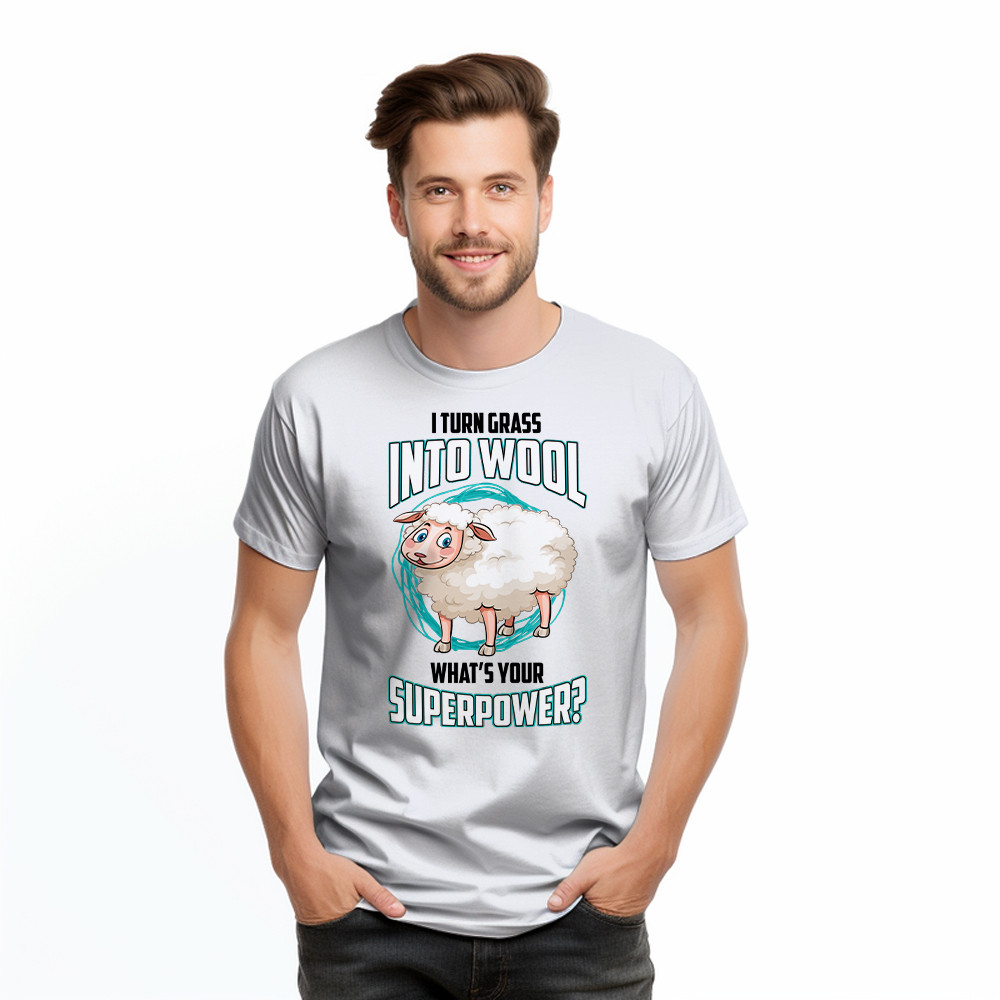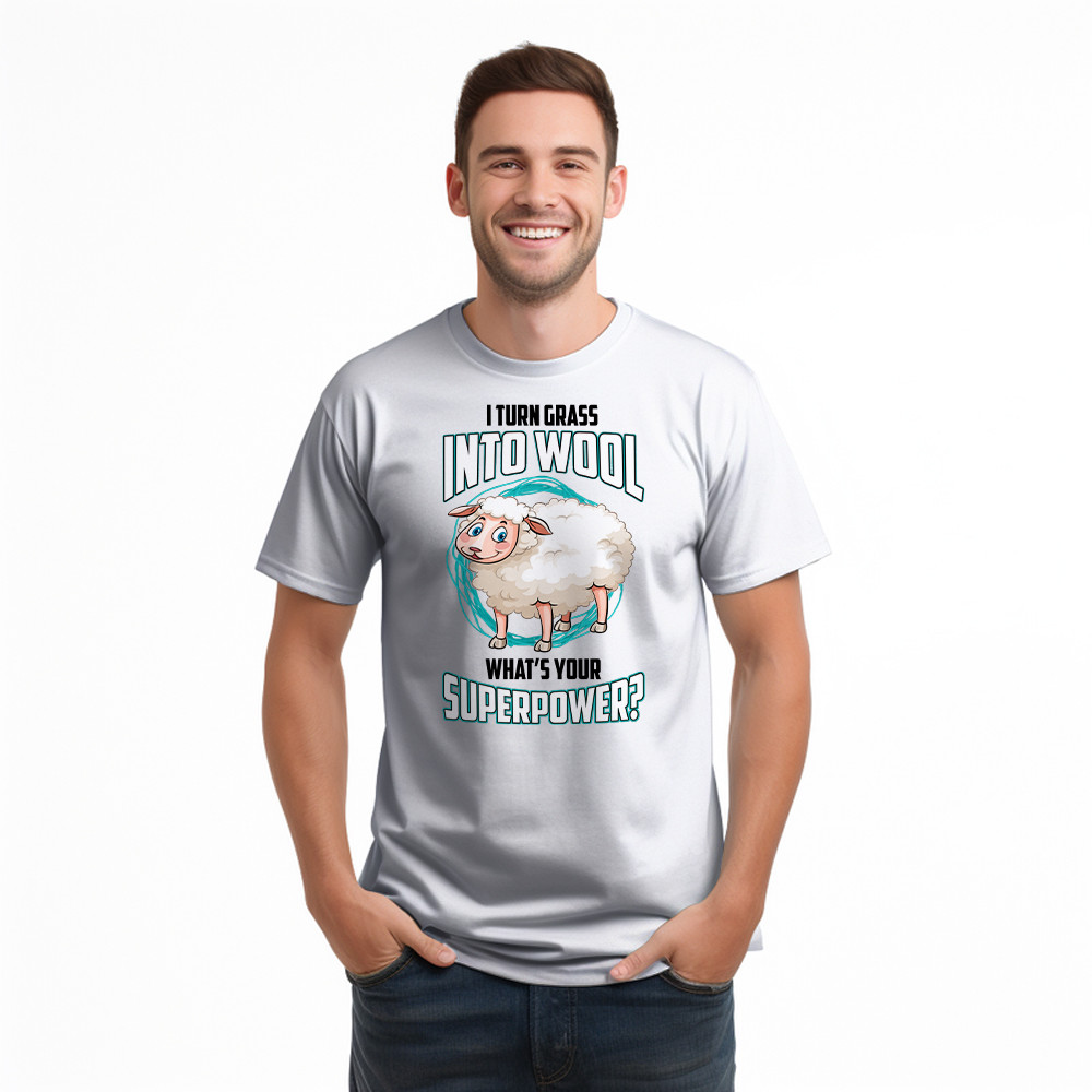 I Turn Grass Into Wool What s Your Superpower Shirt Sheep Farmer Cute T-Shirt Gift For Dad.