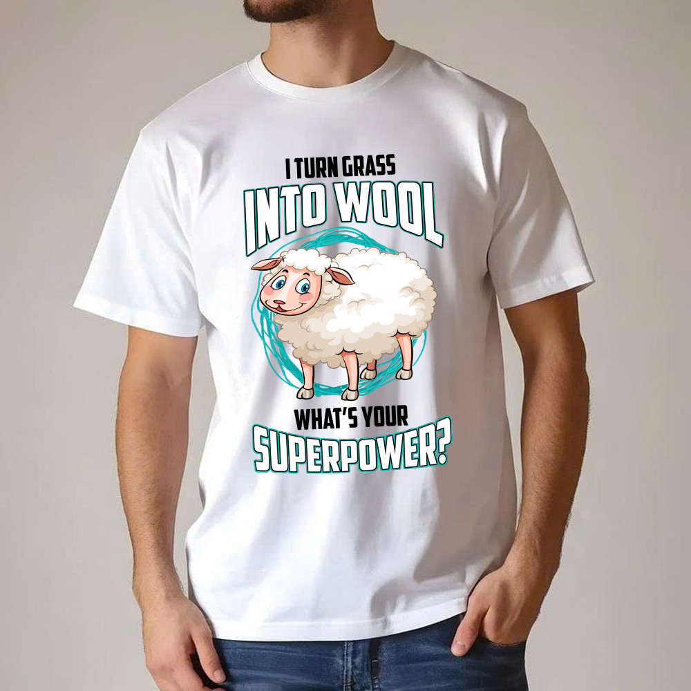 I Turn Grass Into Wool What s Your Superpower Shirt Sheep Farmer Cute T-Shirt Gift For Dad Rivonaprint