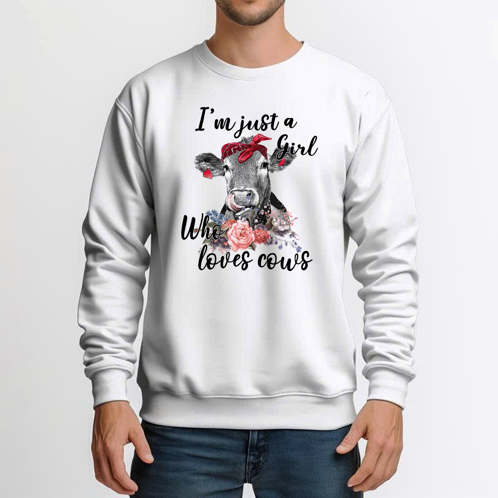 I’m Just A Girl Who Loves Cows Shirt Funny Farmer Female Sweatshirt Gifts For Cow Lovers Rivonaprint