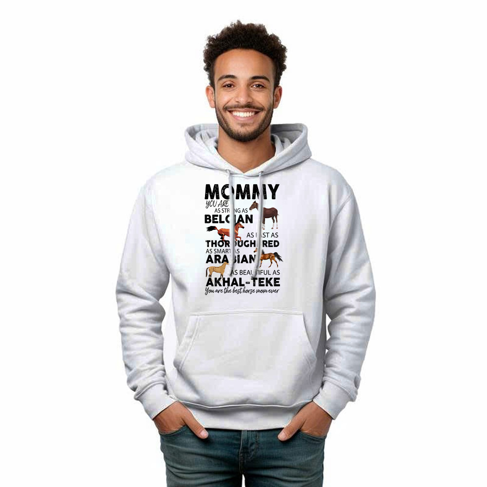 Mommy You Are As Strong As Belgian Thoroughbred Arabian Akhal Teke Hoodie Horse Lover Mom Gift.