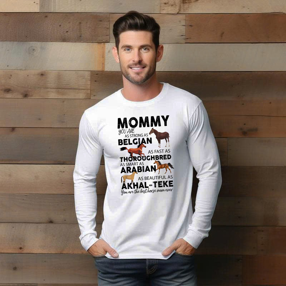 Mommy You Are As Strong As Belgian Thoroughbred Arabian Akhal Teke Long Sleeve Shirt Horse Lover Mom Gift Rivonaprint