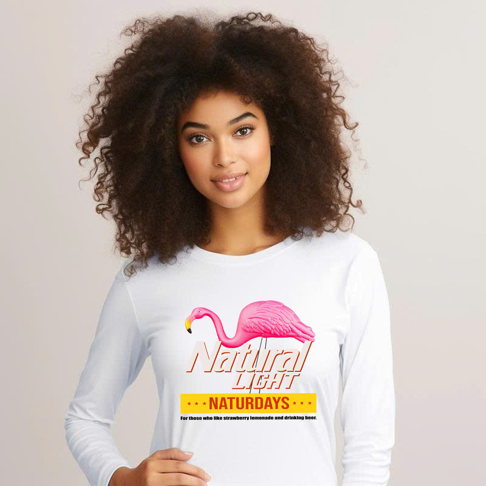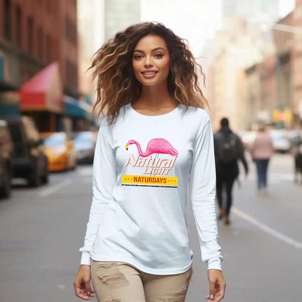 Pink Flamingo Natural Light Naturdays Long Sleeve Shirt Funny Sayings Flamingo Shirt Mens Womens.