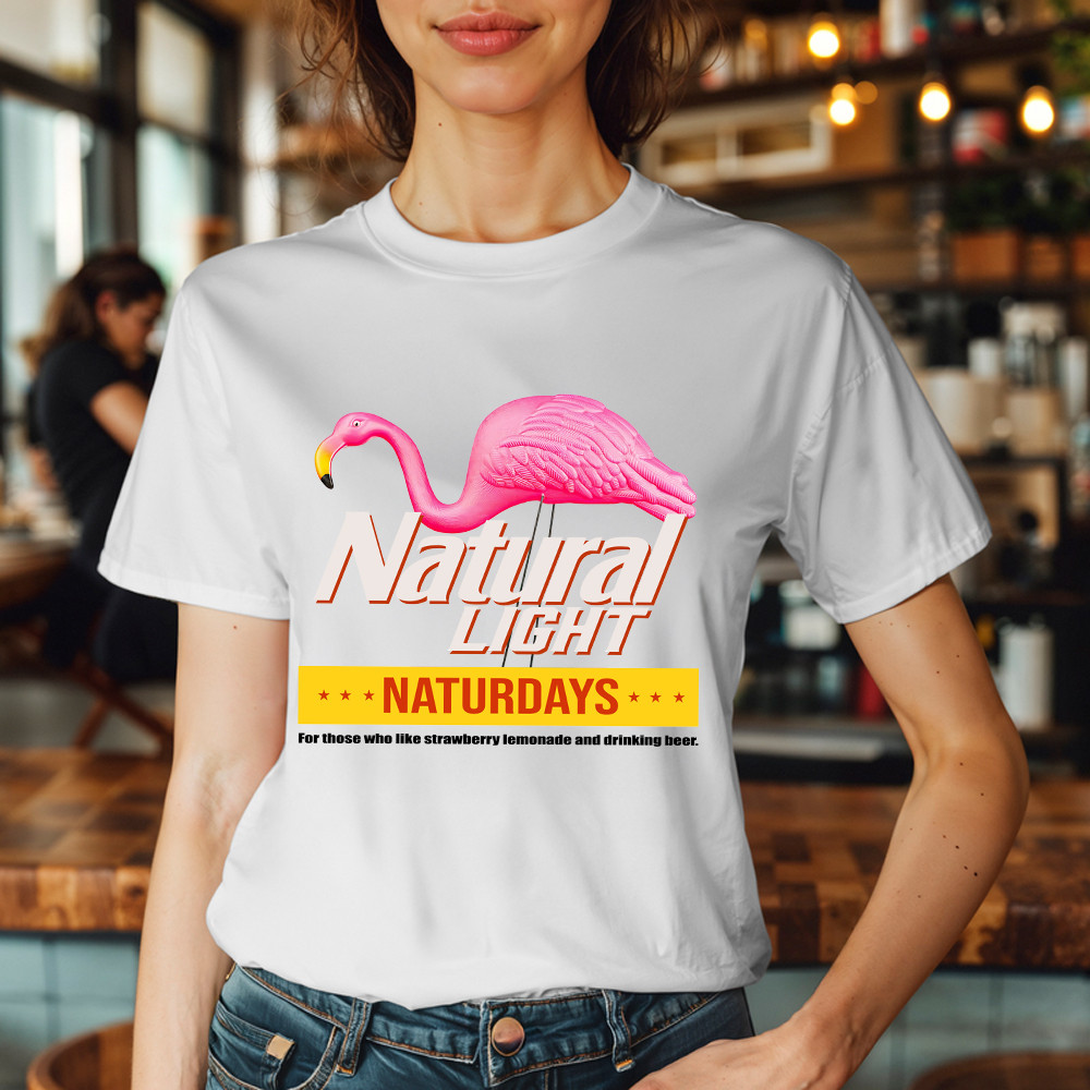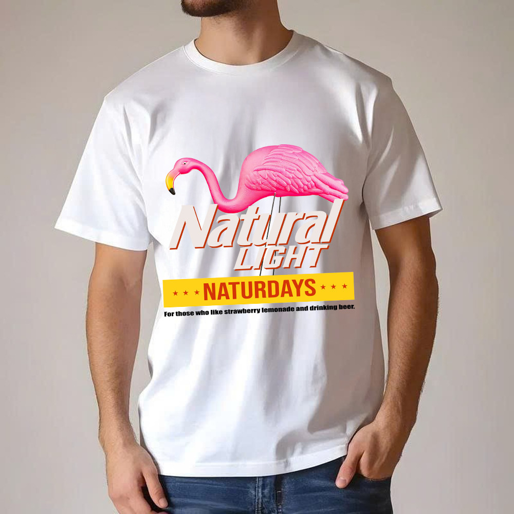 Pink Flamingo Natural Light Naturdays T-Shirt Funny Sayings Flamingo Shirt Mens Womens.