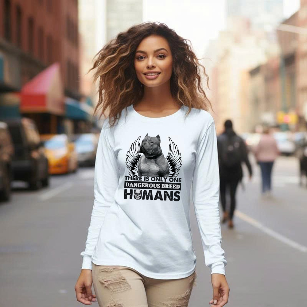 Pitbull There Is Only One Dangerous Breed Humans Shirt Funny Sarcastic Long Sleeve Shirt Dog Lovers Gift.