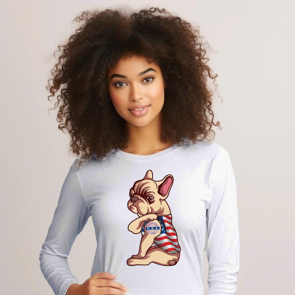 Pitbull With Tattoo USA Proudly Made In America Shirt Fun Dog Design Long Sleeve Shirt Patriotic Gift.