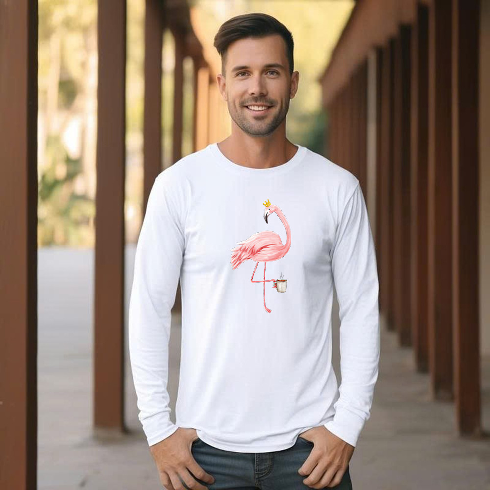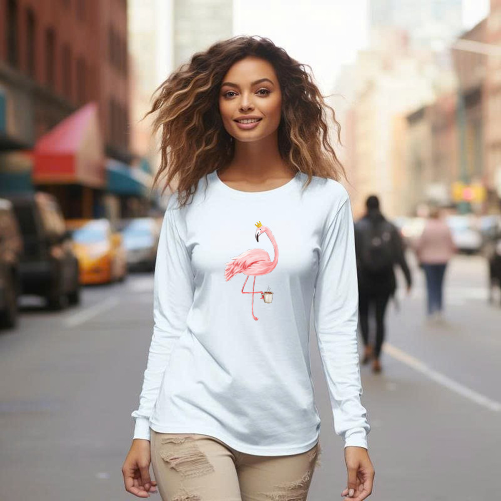 Queen Flamingo With Coffee Shirt Cute Animal Ladies Long Sleeve Shirt Gift For Coffee Lovers.
