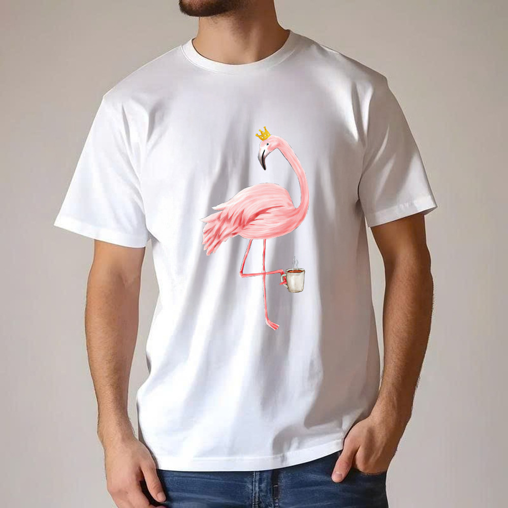 Queen Flamingo With Coffee Shirt Cute Animal Ladies T-Shirt Gift For Coffee Lovers.