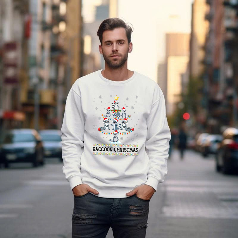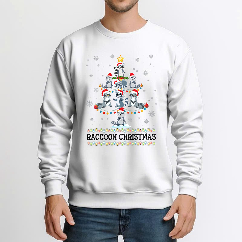 Raccoon Christmas Tree Shirt Racoon Fun Holiday Sweatshirt Xmas Gift Ideas For Her.