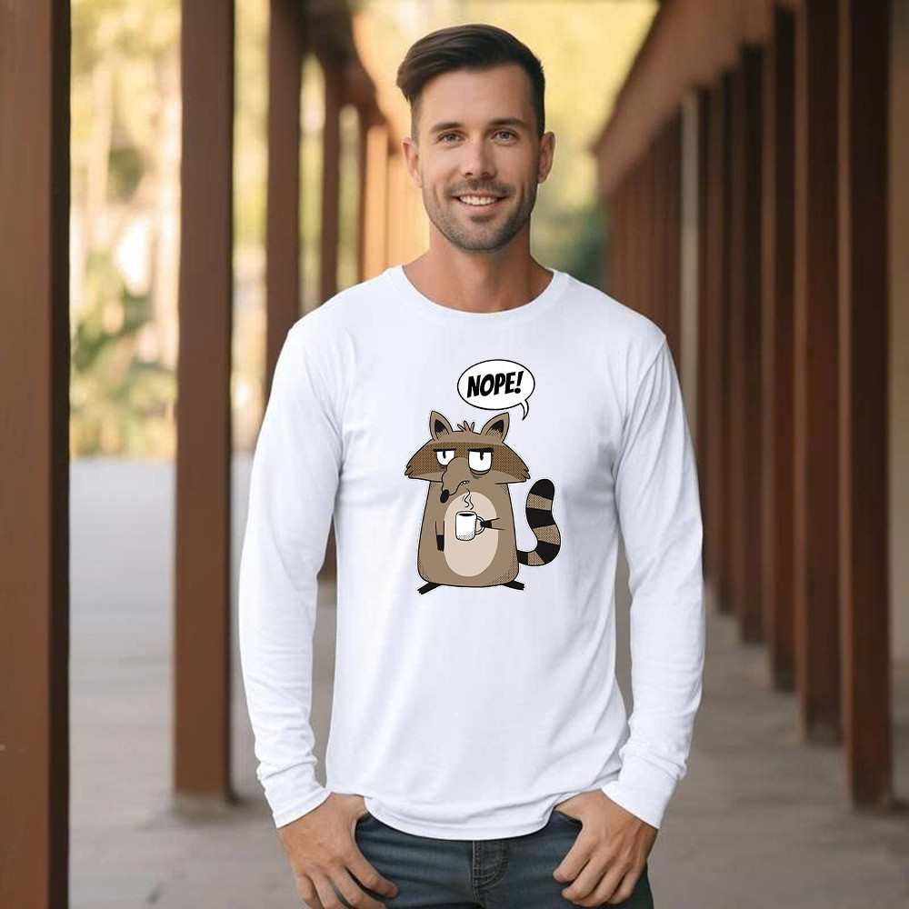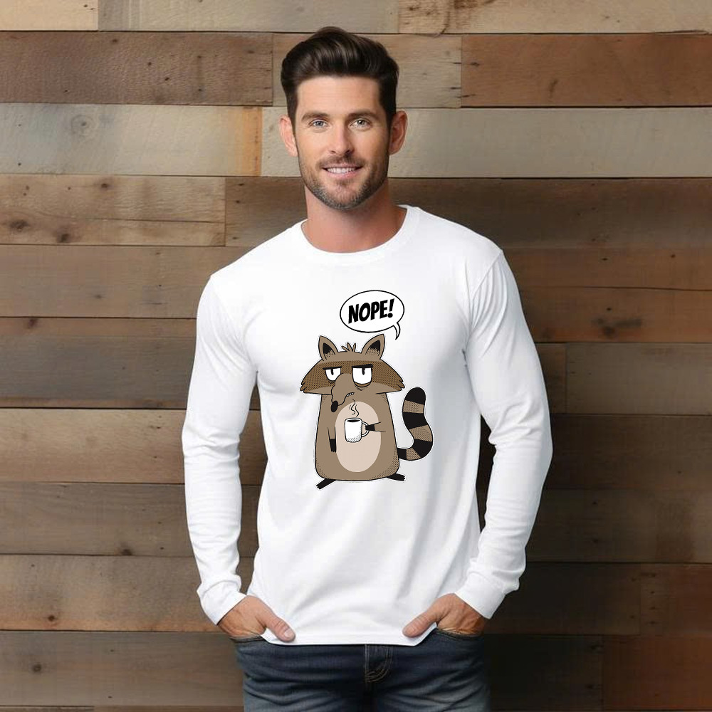 Racoon Morning Coffee Nope Long Sleeve Shirt Hilarious Funny Racoon Shirt Graphic Tee.