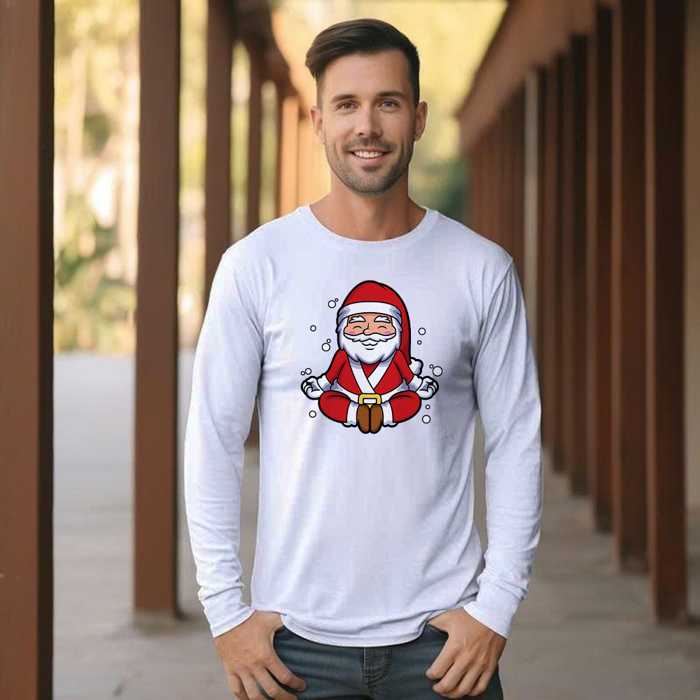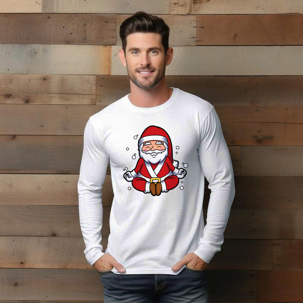 Santa Doing Yoga Meditate Long Sleeve Shirt Christmas Funny Santa Claus Shirts.