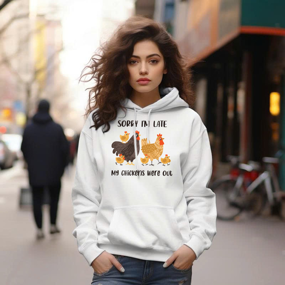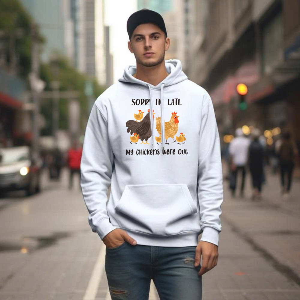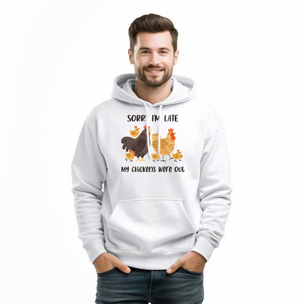 Sorry I’m Late My Chickens Were Out Hoodie Funny Sayings Shirt Gifts For Chicken Farmers.