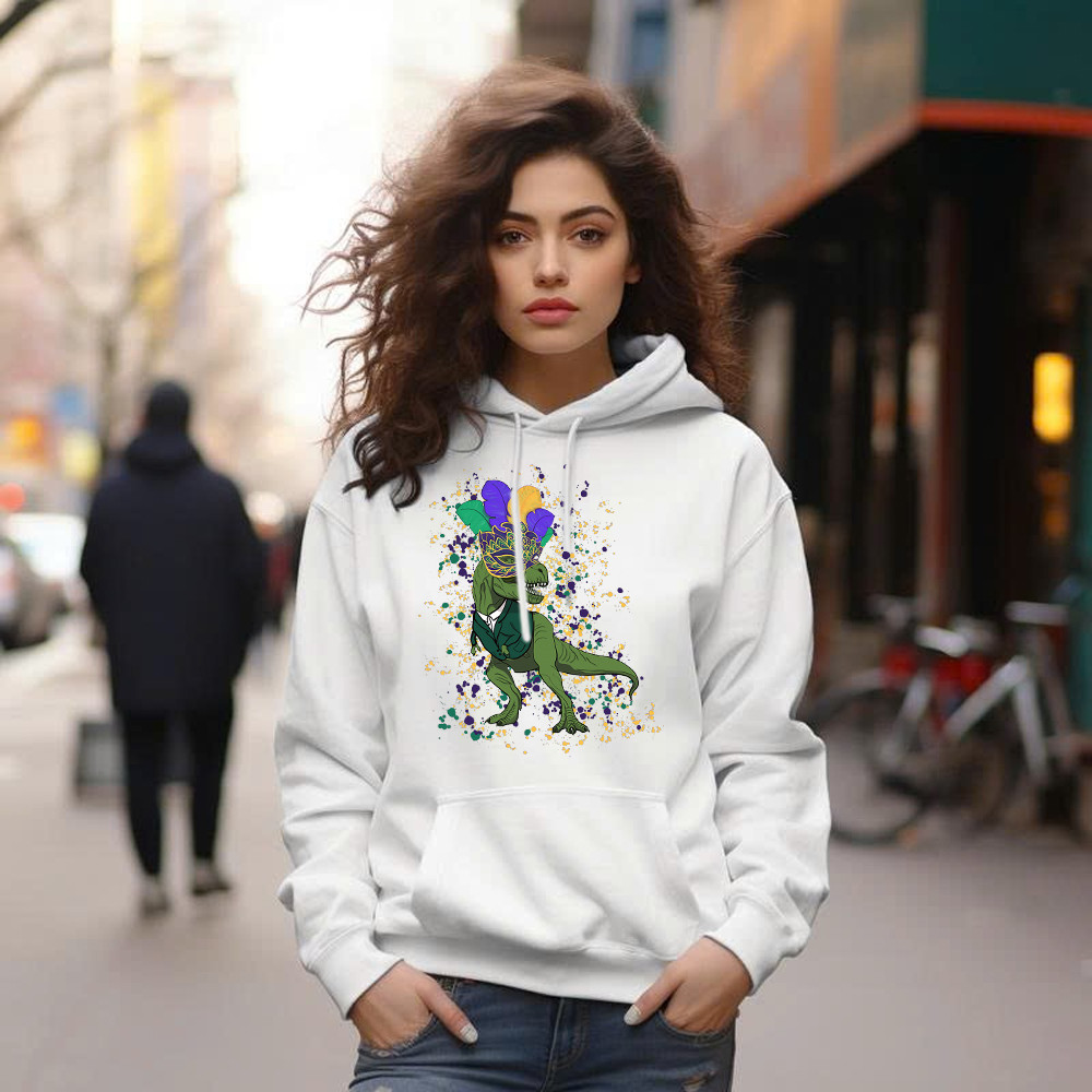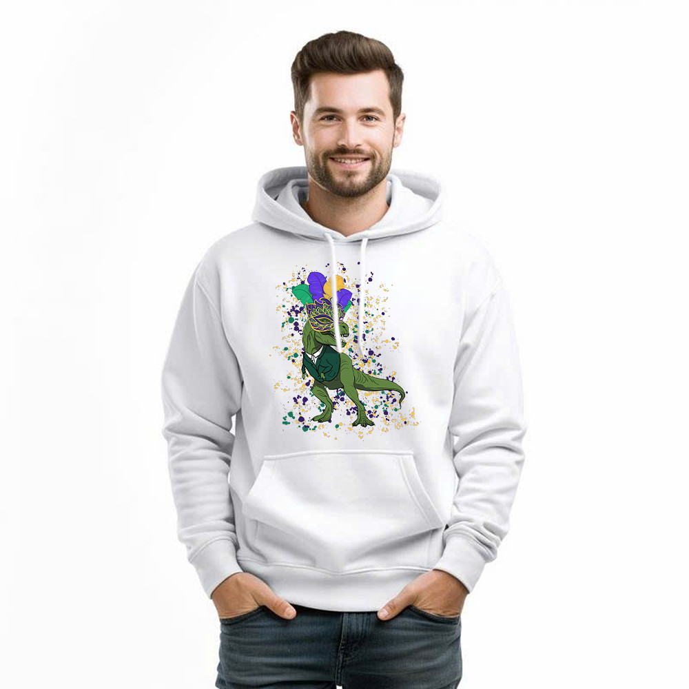 T-Rex Dinosaur Mardi Gras Hoodie Themed Mardi Gras Gift Ideas For Him.