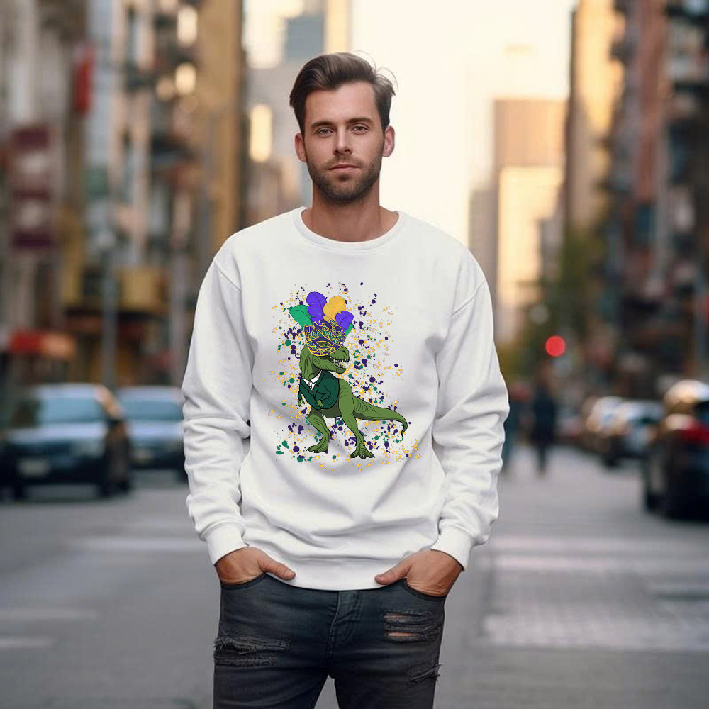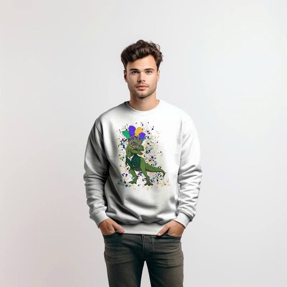 T-Rex Dinosaur Mardi Gras Sweatshirt Themed Mardi Gras Gift Ideas For Him.