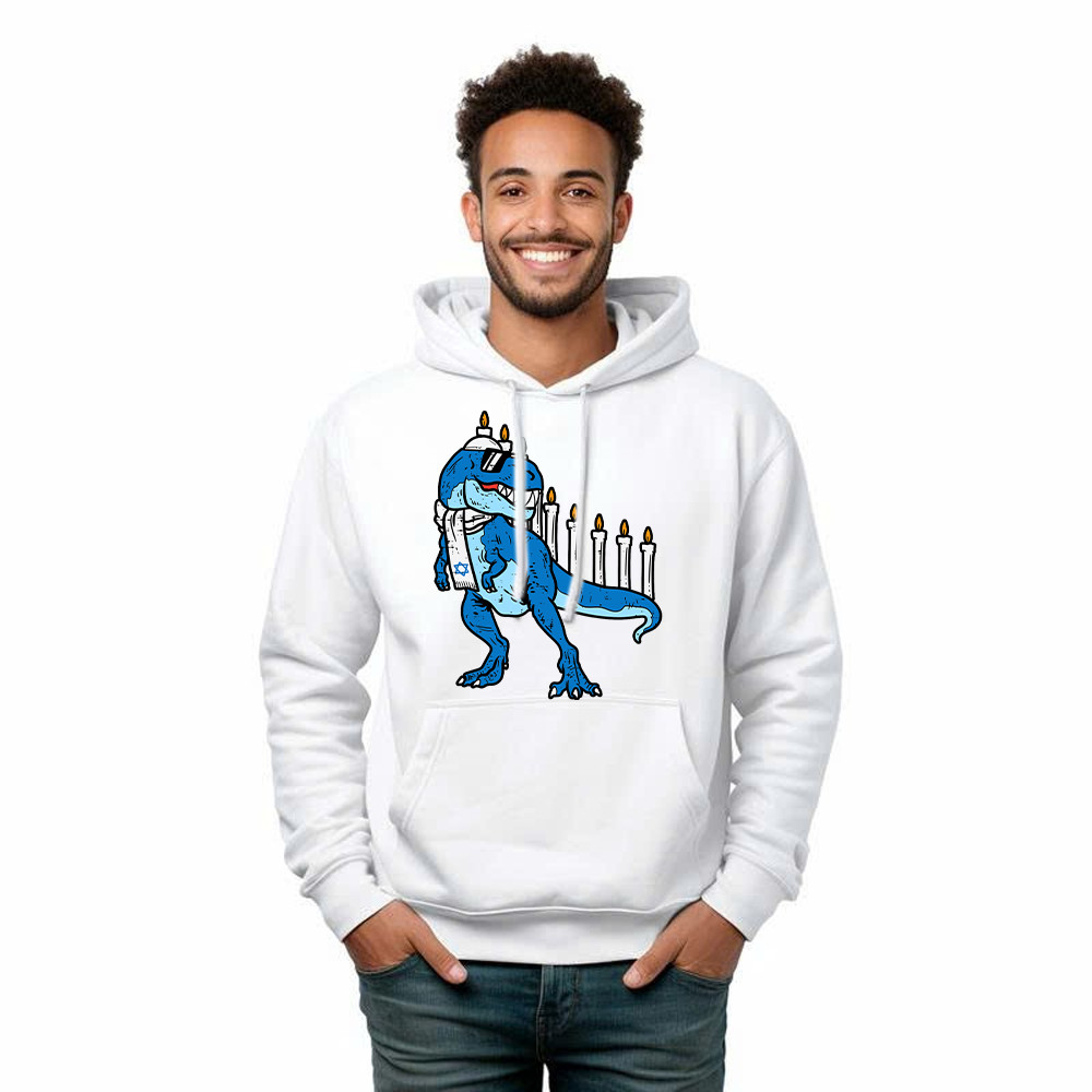 T-Rex Dinosaur Menorah Hanukkah Jewish Boys Hoodie Jewish Birthday Gifts For Boys Rivonaprint