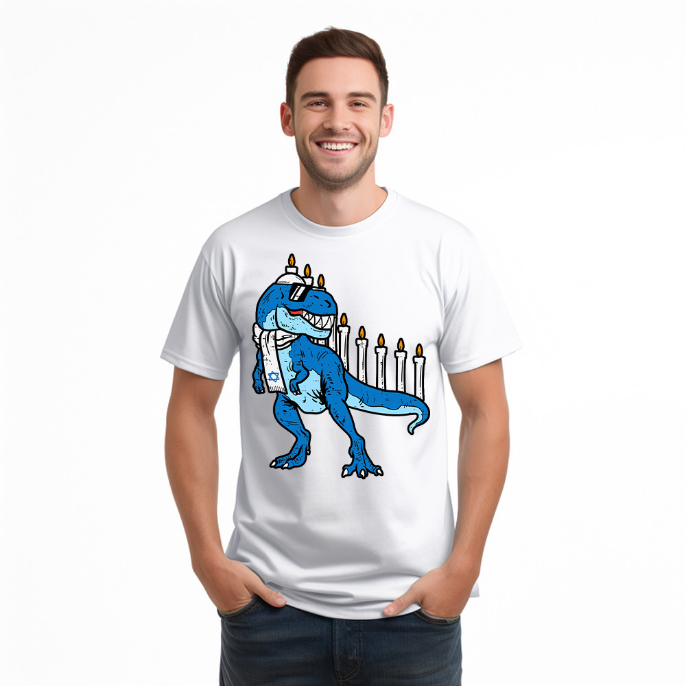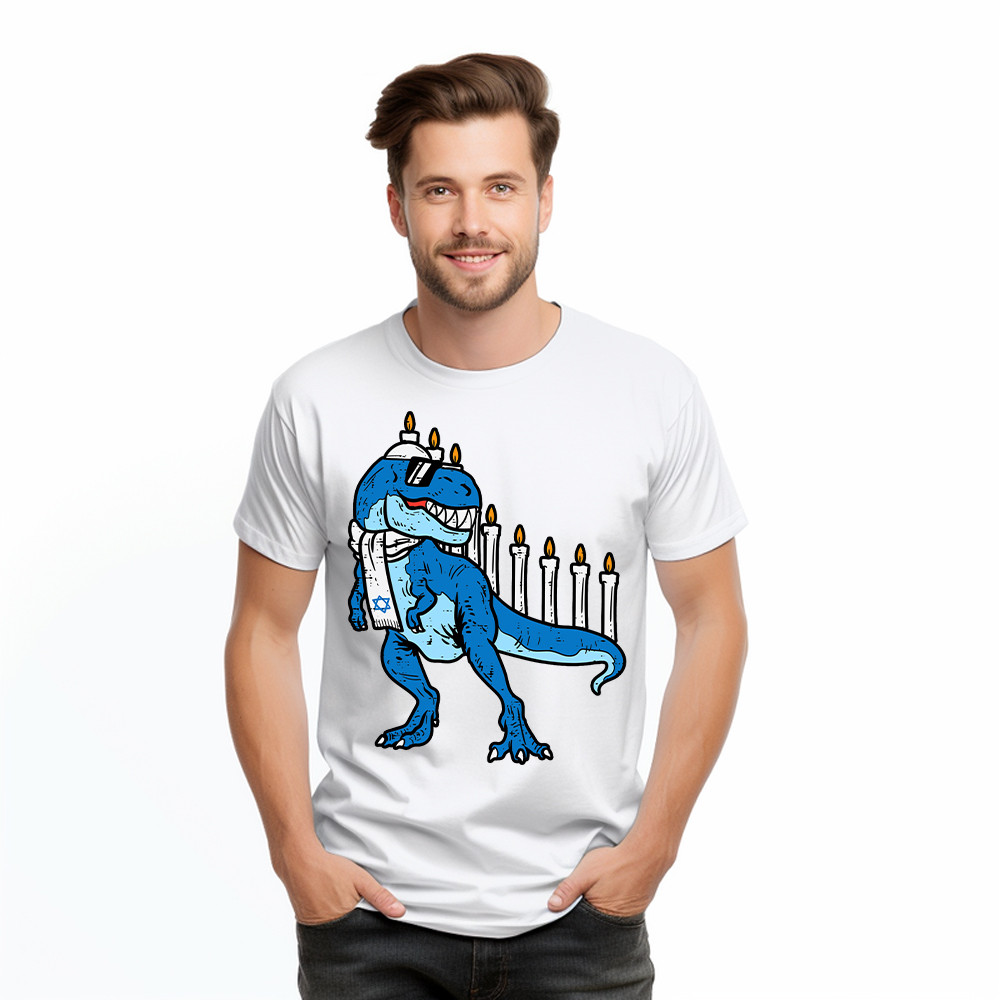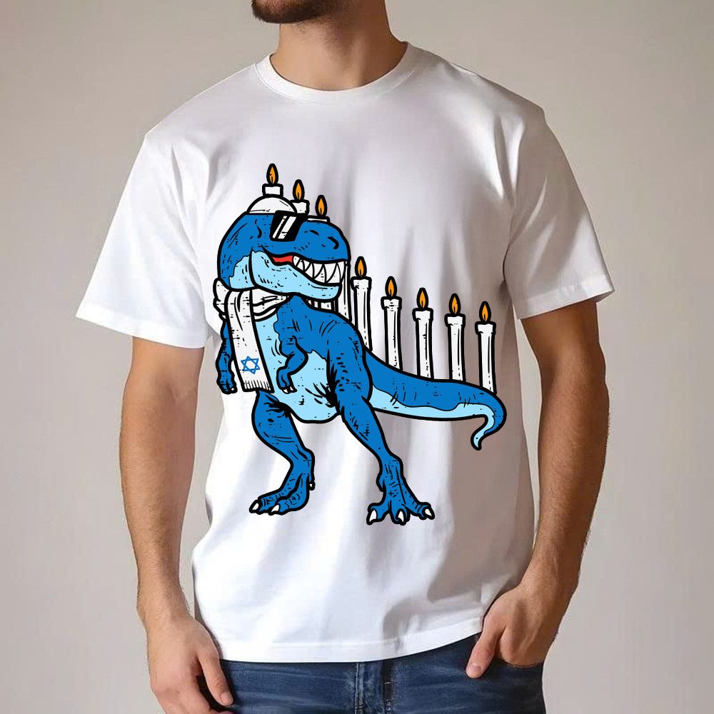 T-Rex Dinosaur Menorah Hanukkah Jewish Boys Shirt Jewish Birthday Gifts For Boys Rivonaprint