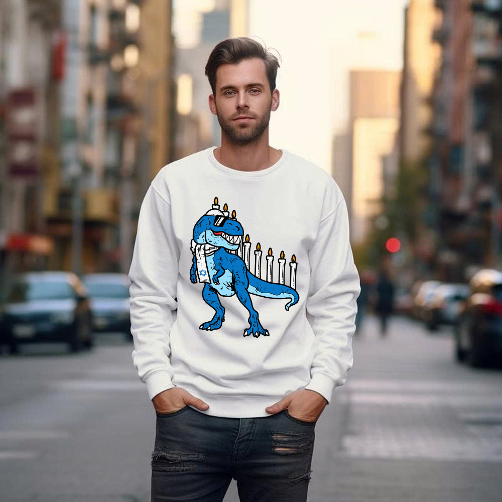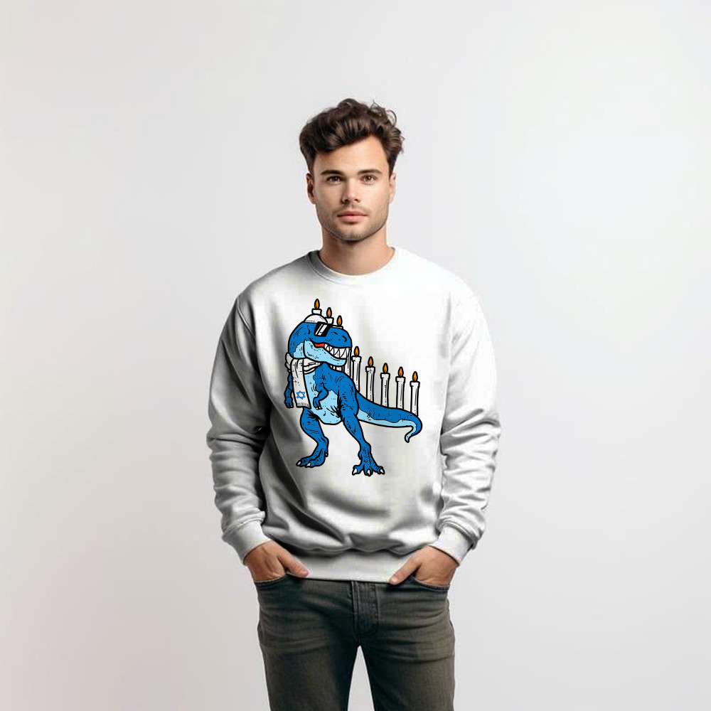 T-Rex Dinosaur Menorah Hanukkah Jewish Boys Sweatshirt Jewish Birthday Gifts For Boys Rivonaprint