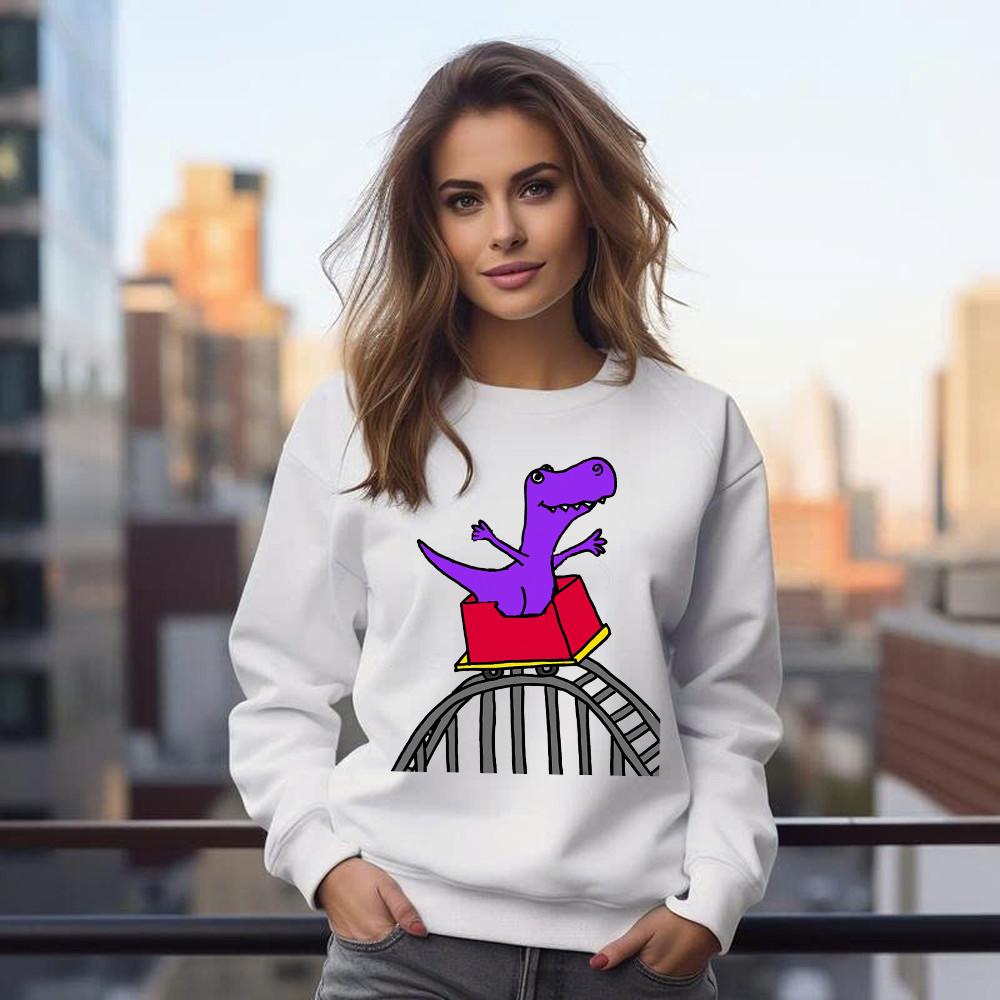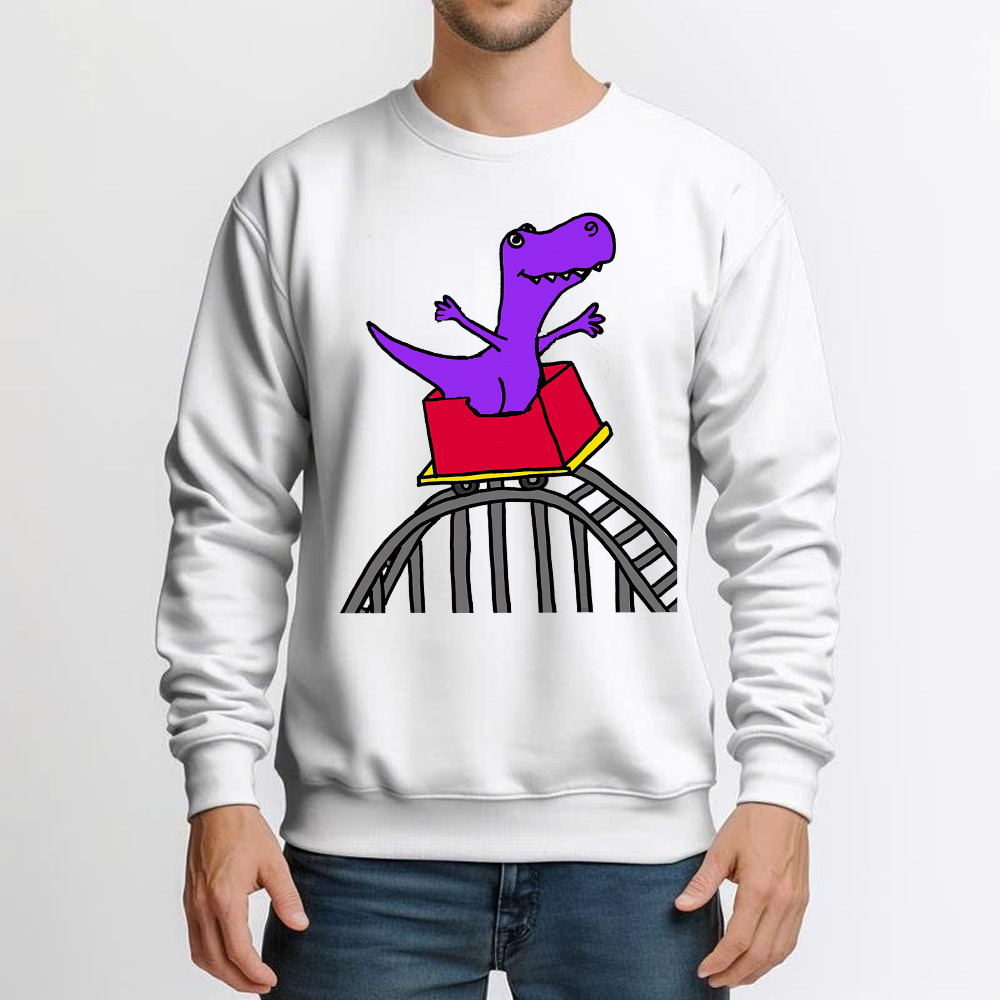 T-Rex Riding Roller Coaster Sweatshirt Funny Cute Graphic Tee Shirt Apparel Gifts For Him.