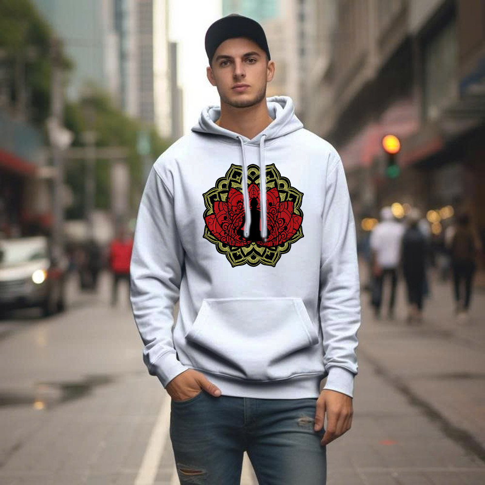 Yoga Red Lotus Flower Meditation Mandala Hoodie Mens Gifts For Yoga Teachers.