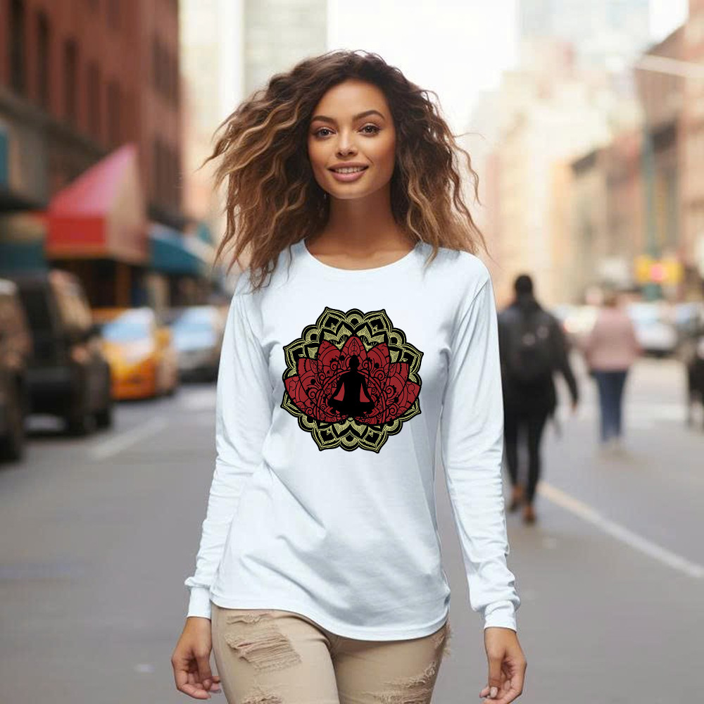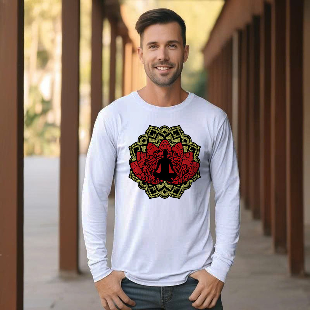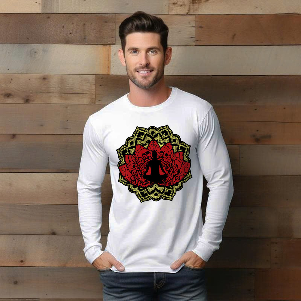 Yoga Red Lotus Flower Meditation Mandala Long Sleeve Shirt Mens Gifts For Yoga Teachers.