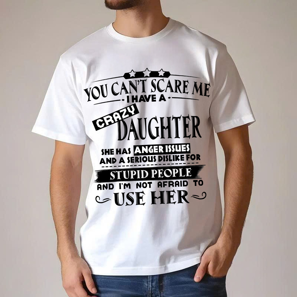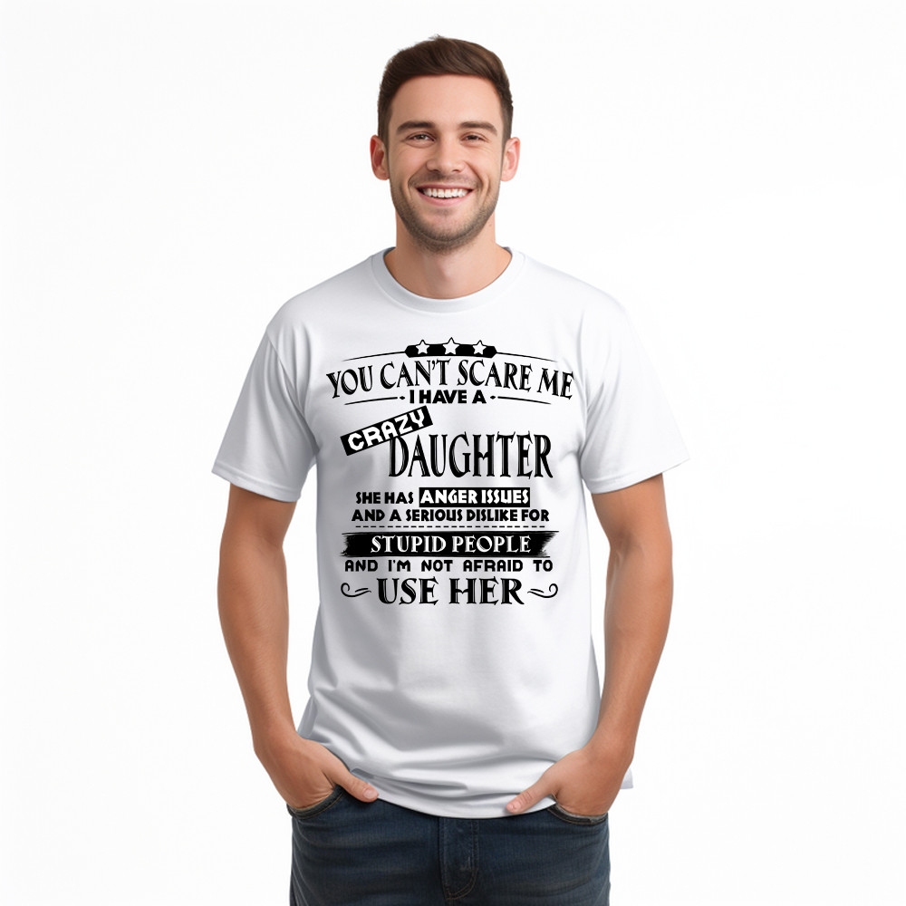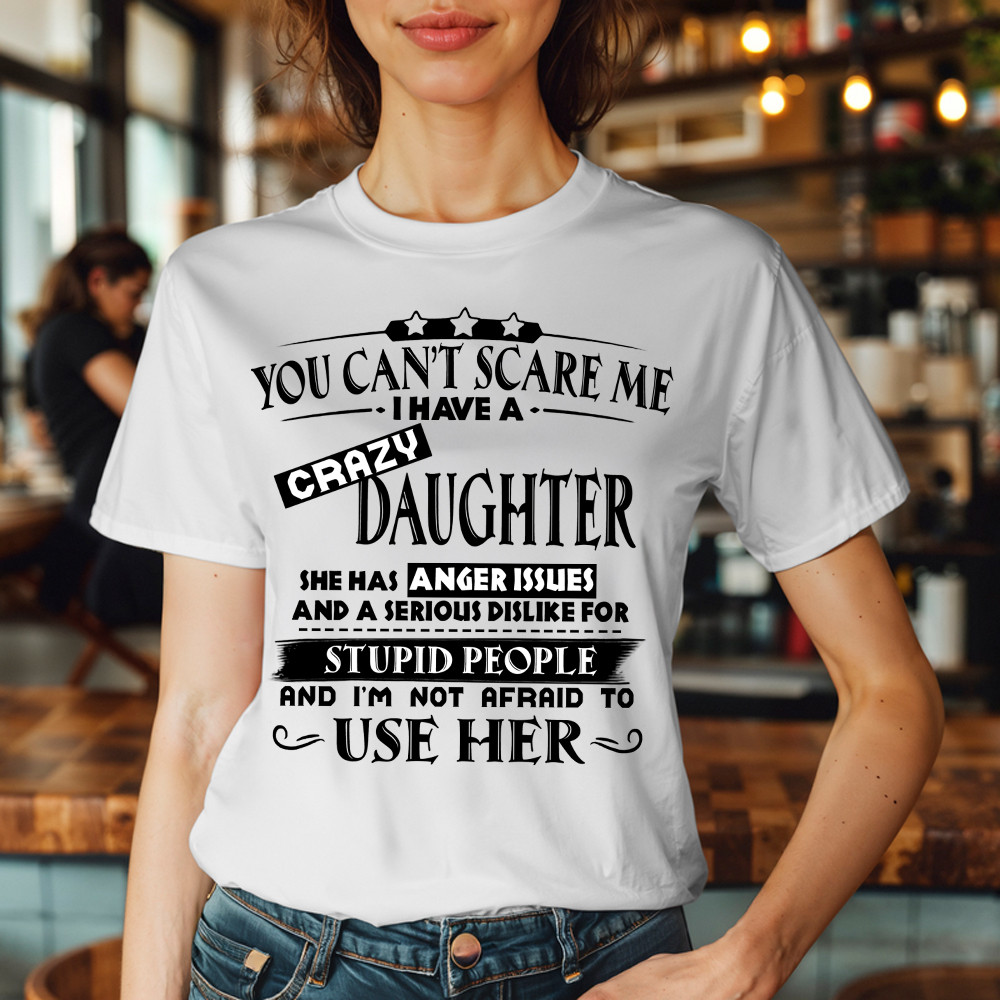 You Can’t Scare Me I Have A Crazy Daughter Shirt Funny Saying T-Shirt Gifts For Dad Mom.