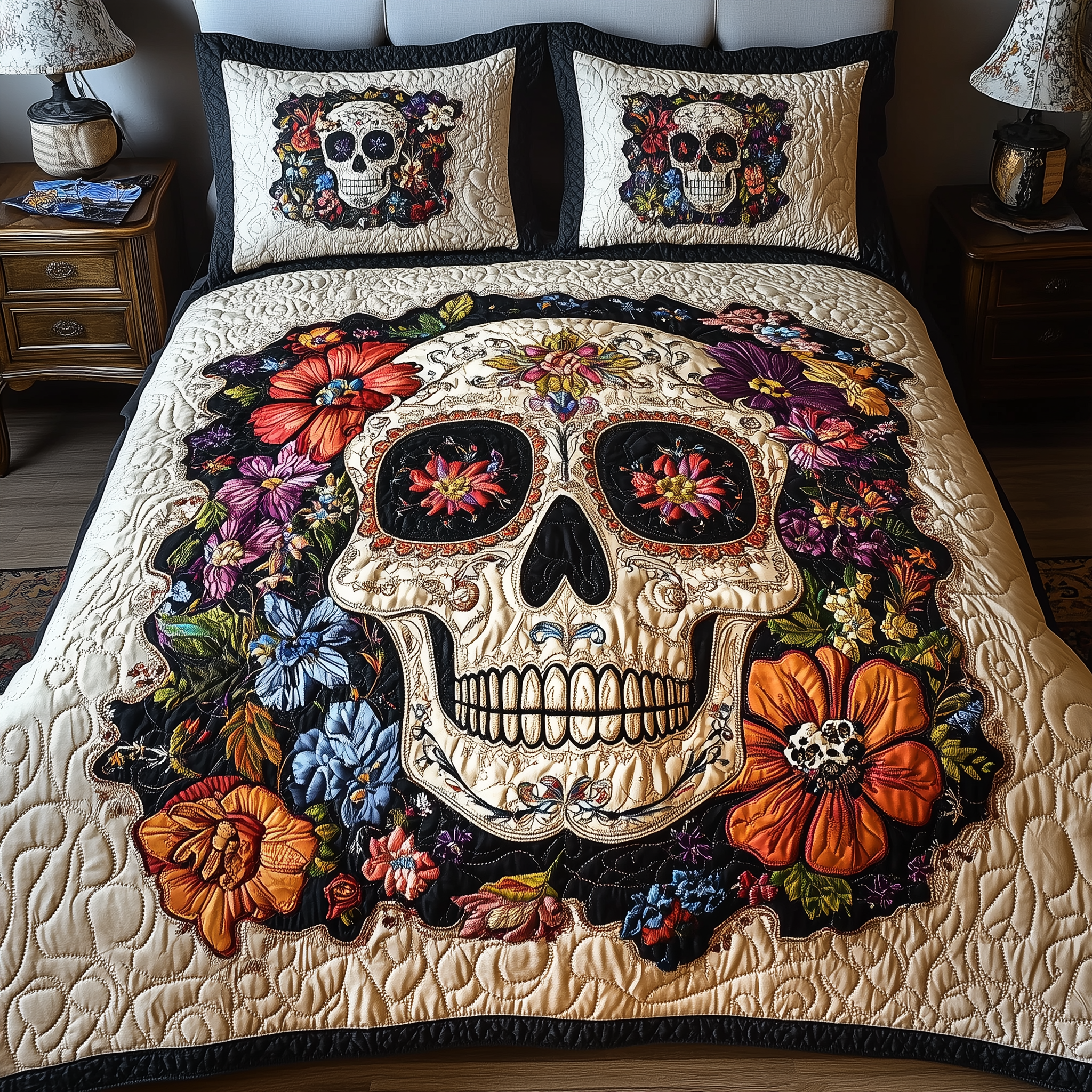 Dark Christmas Skull Quilted Bedding Set Christmas Bedding Set Cool Gifts For Couples Who Have Everything