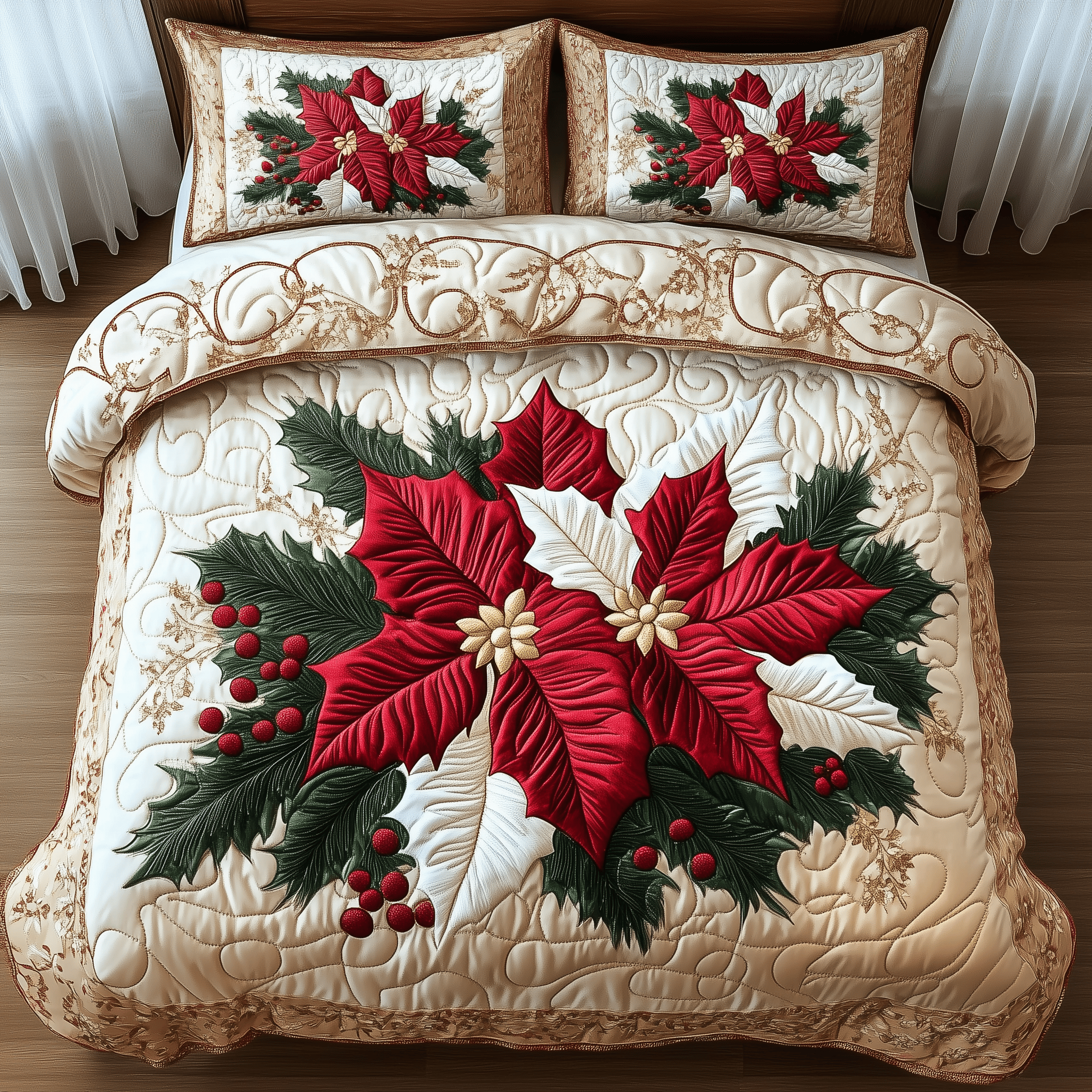 Elegant Poinsettias Quilted Bedding Set Christmas Holiday Bedding Set Unique Christmas Gifts For Parents