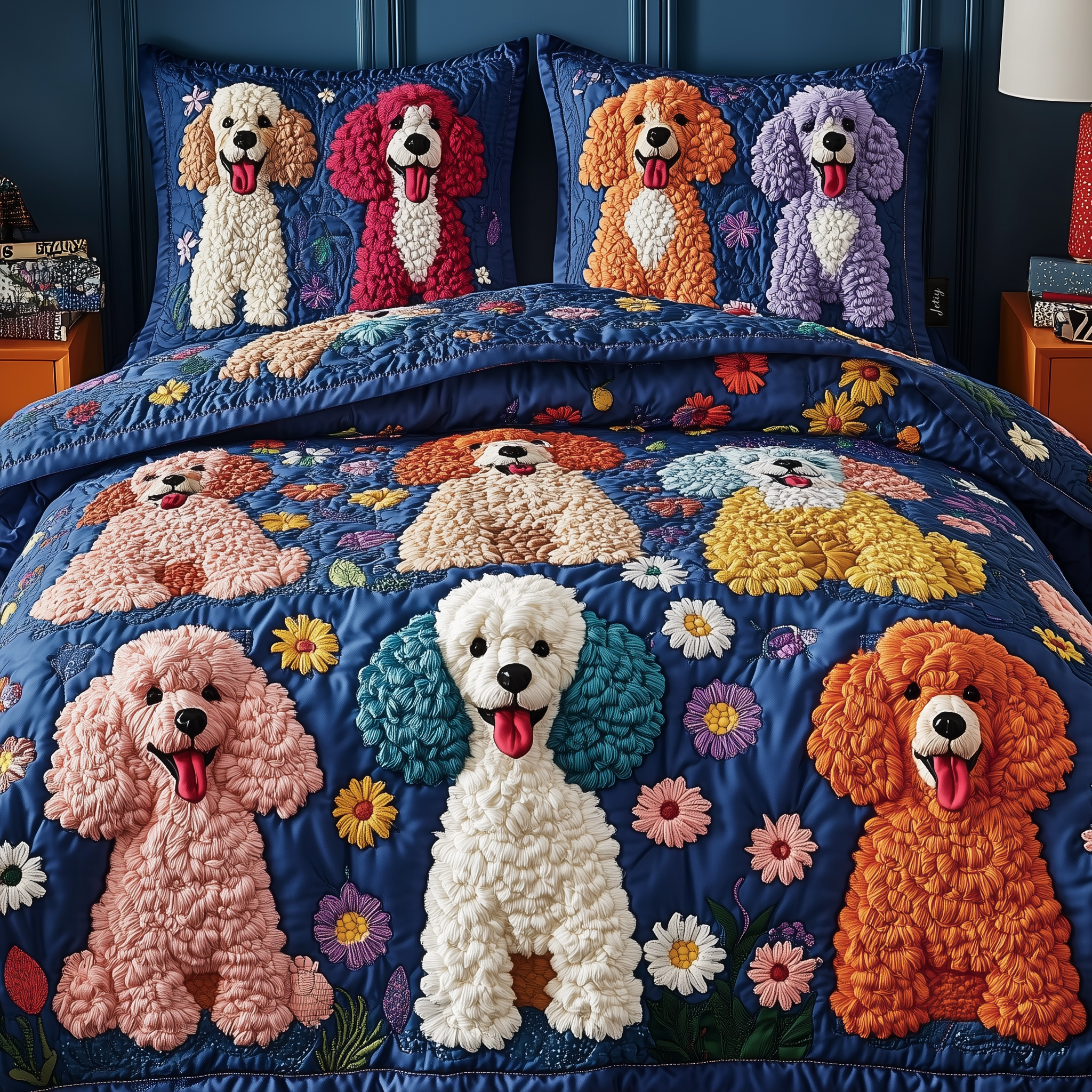 Floral Poodle Quilted Bedding Set Christmas Bedding Set Christmas Gifts For Newlyweds