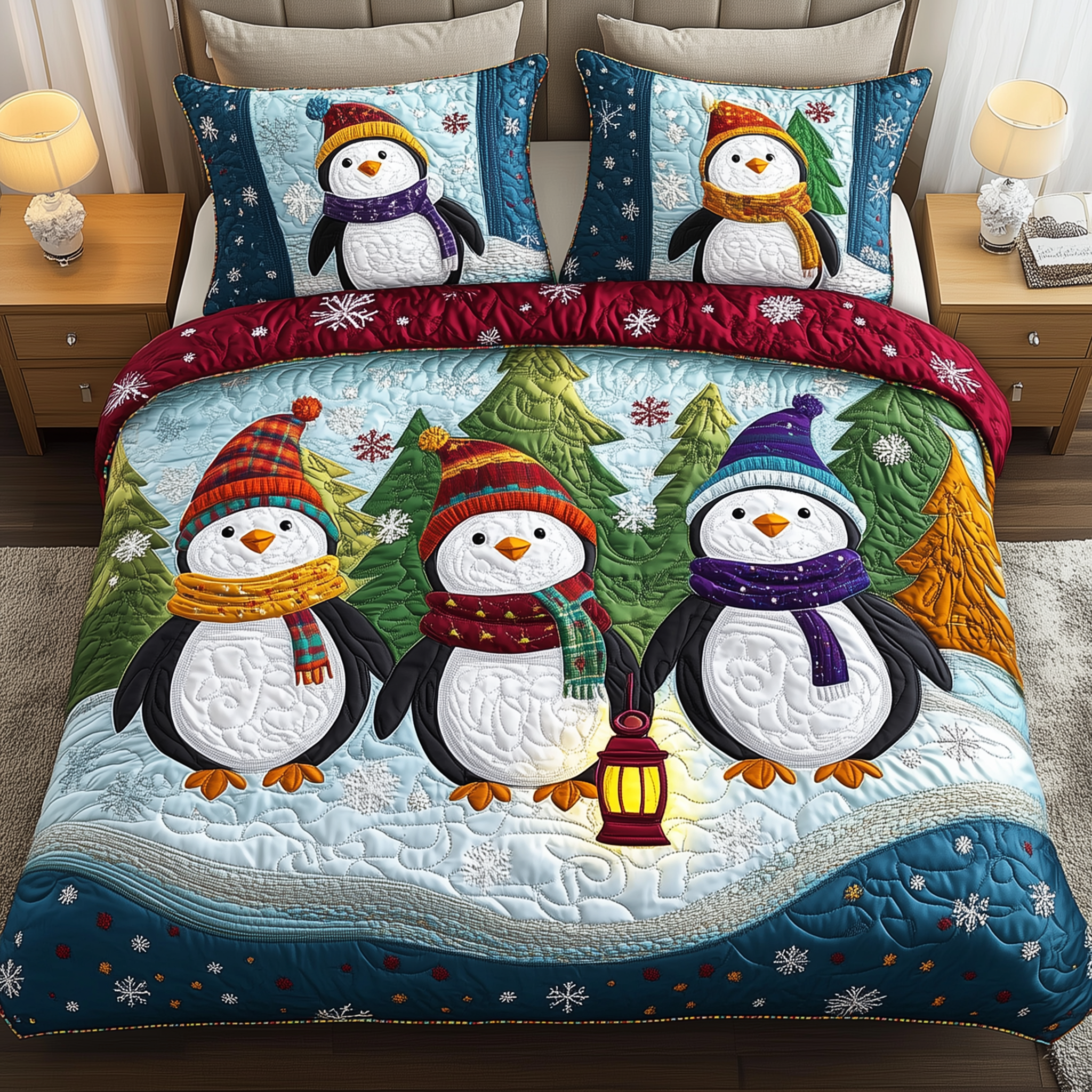 Peaceful Christmas Season Quilted Bedding Set Christmas Bedding Set Best Gift Experiences For Couples