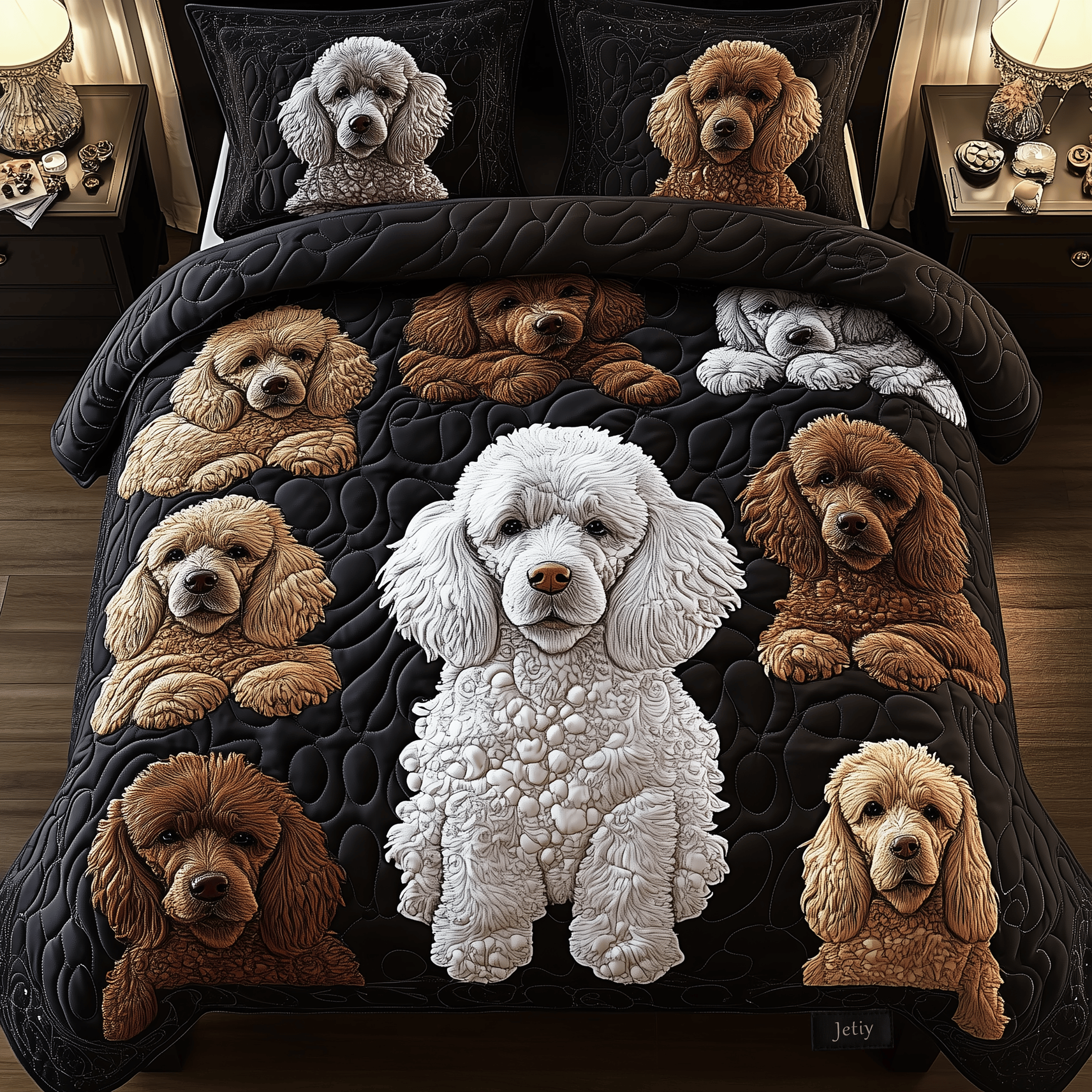 Playful Poodle Quilted Bedding Set Xmas Bedding Set Best Christmas Gifts 2024 For Couples