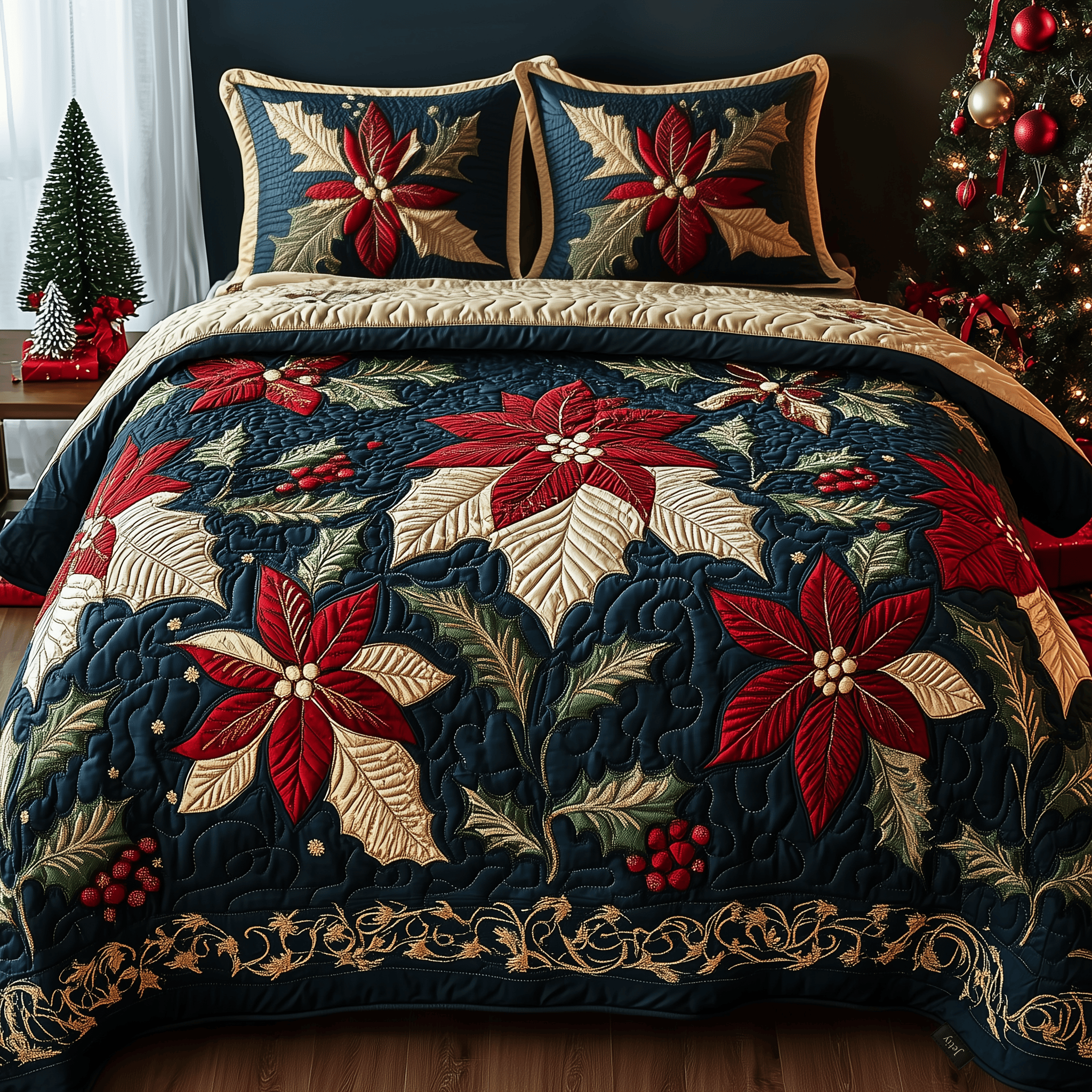 Playful Poodle Quilted Bedding Set Xmas Bedding Set Best Christmas Gifts 2024 For Pet Lovers