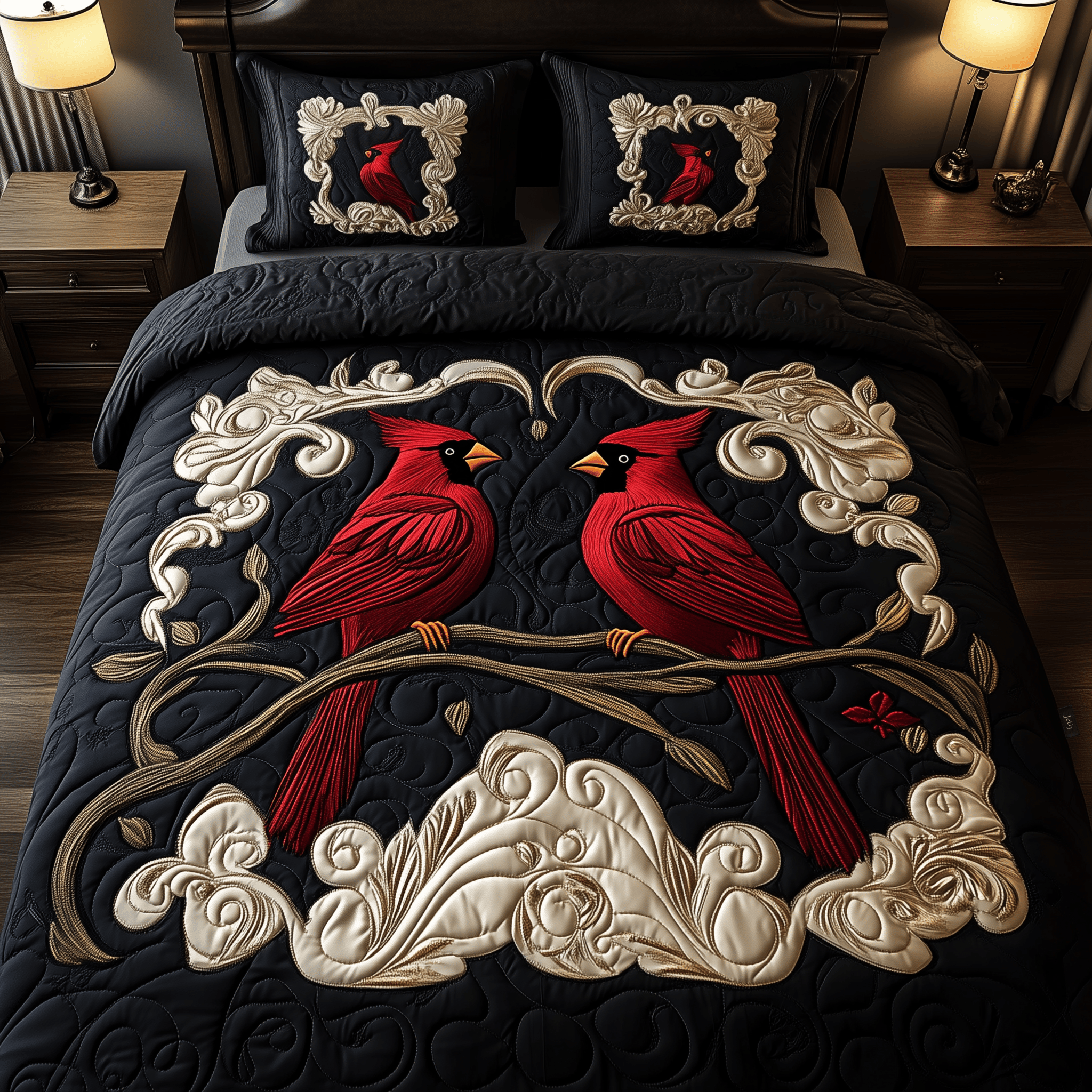 Red Cardinal Couple Quilted Bedding Set Christmas Bedding Set Gifts For Couples Who Have Everything