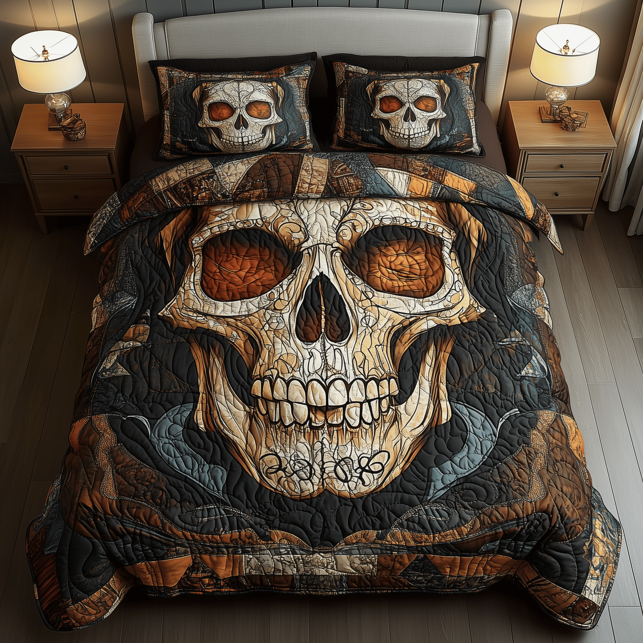 Vintage Skull Couple Quilted Bedding Set Christmas Bedding Set Gifts For Couples Who Have Everything