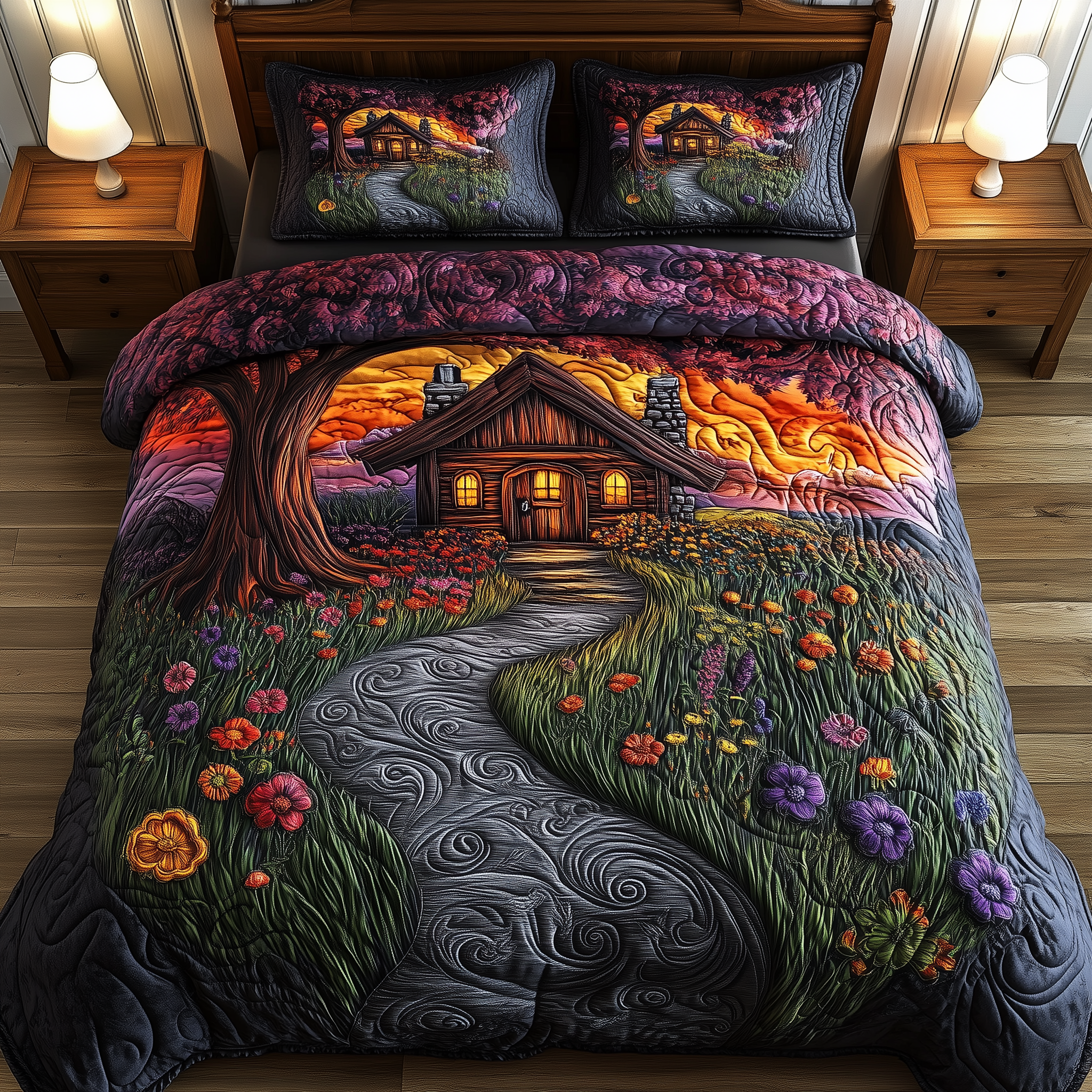 Vintage Snow Cabin Quilted Bedding Set Christmas Bedding Set Romantic Gift Experiences For Couples