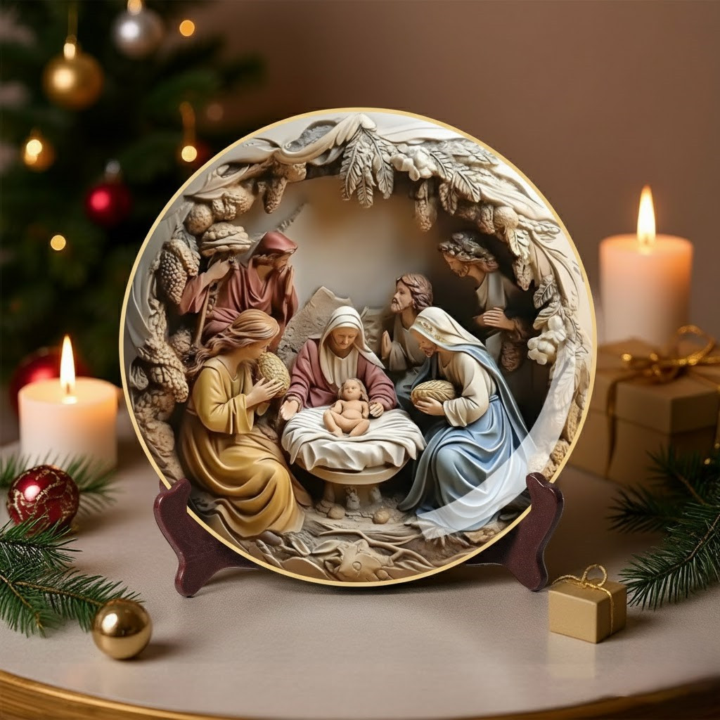 Luminous Motherly Grace Christmas Ceramic Plate Xmas Gifts For Christians.