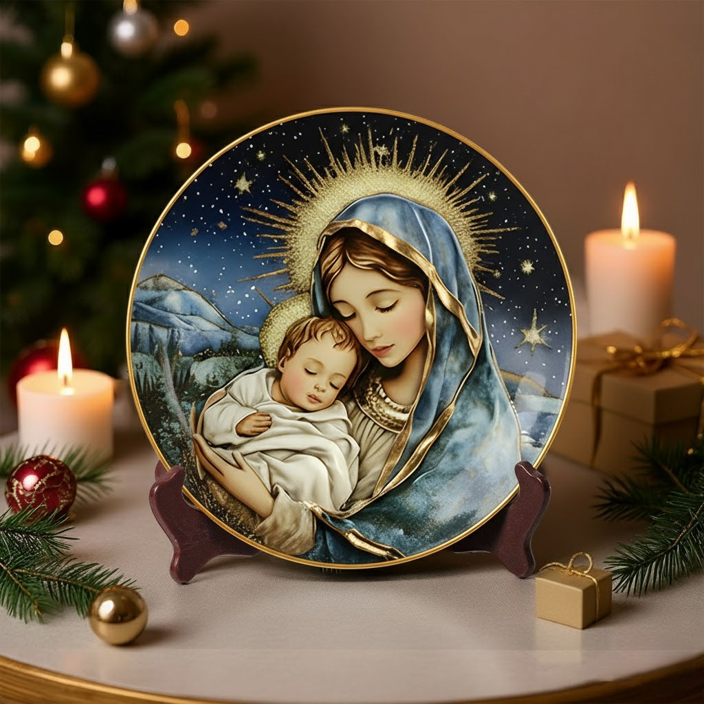 Our Lady of Guadalupe Embrace Christmas Ceramic Plate Religious Presents For Your Family.