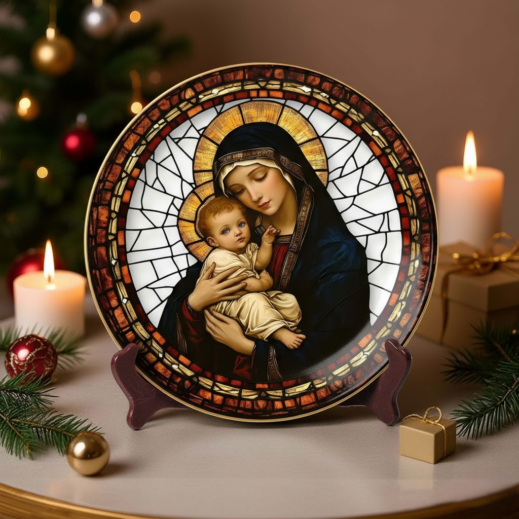 Our Lady Of The Rosary Christmas Ceramic Plate Religious Xmas Gifts For Your Mom.