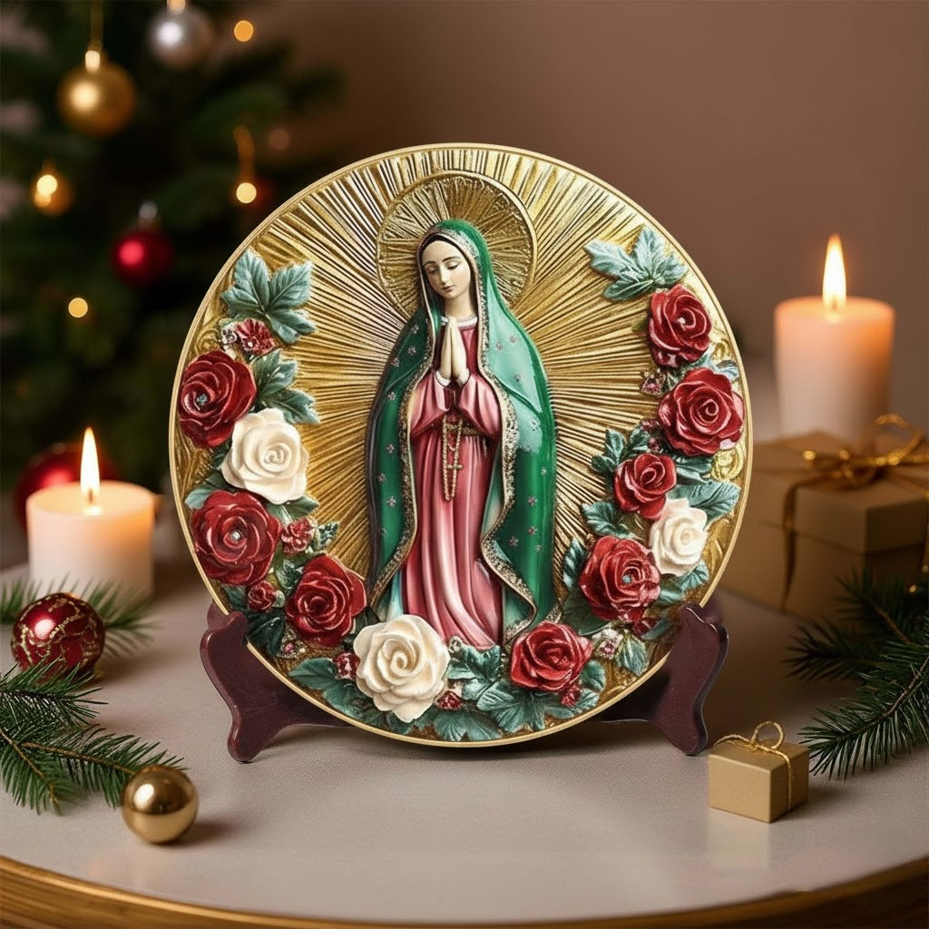 Peaceful Virgin Mary Roses Christmas Ceramic Plate 2025 Holiday Gifts For Women Of Faith