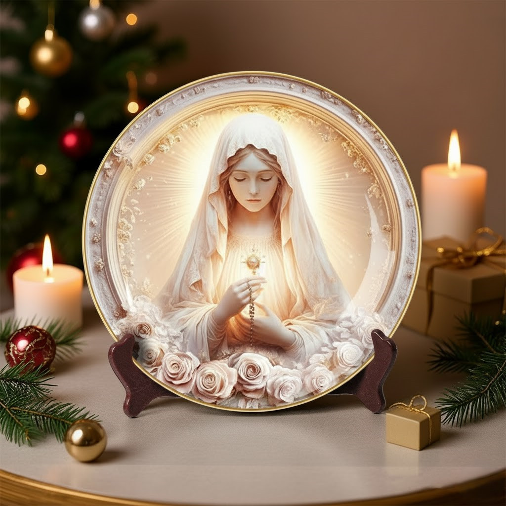 Red Cardinal Bird In Snow Forest Christmas Ceramic Plate Living Room Decor Peaceful Gifts.