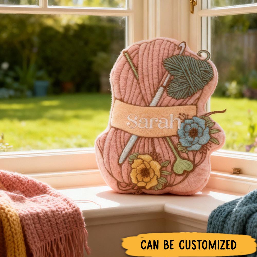 Customized Funny Pillow Graphic 3D Print Christmas Hat Yarn Ball Customized Name Gift for Knitting Lovers