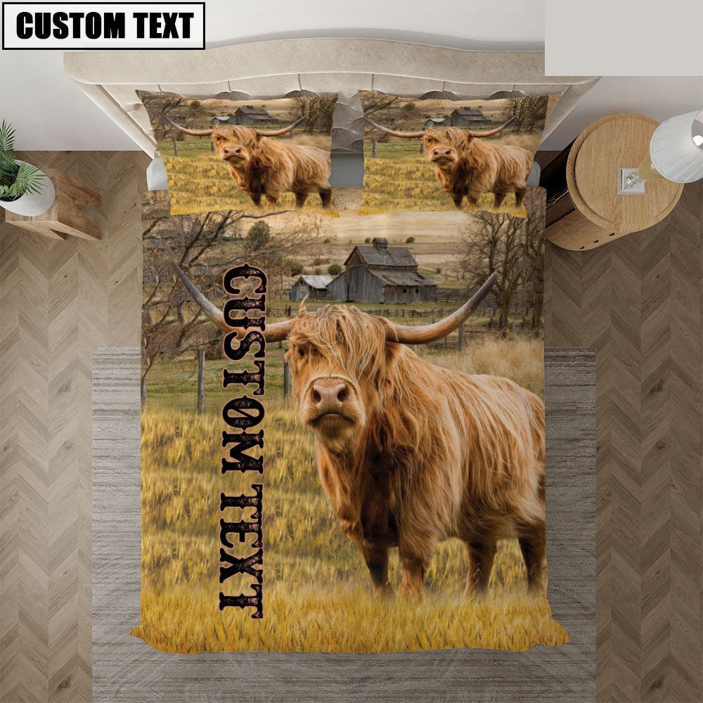 Personalized Name Highland Cattle On The Farm Bedding Set Couple Gifts.