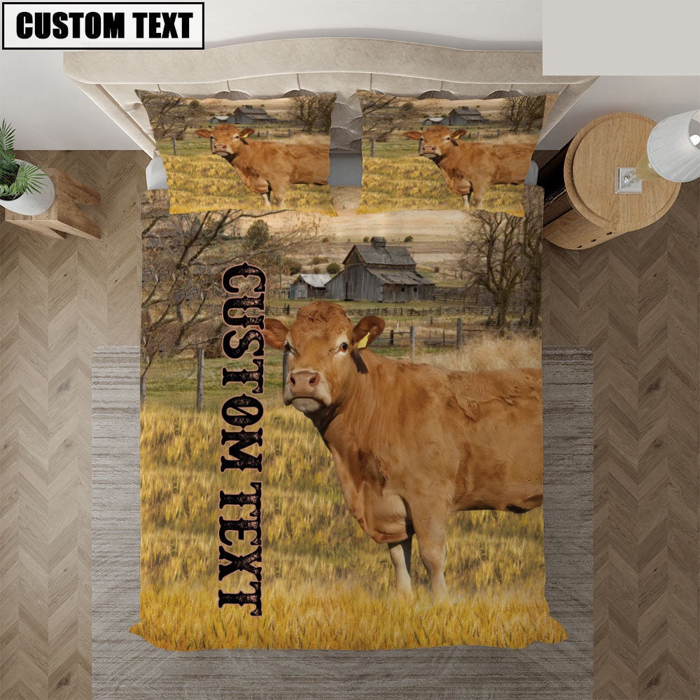 Personalized Name Limousin Cattle On The Farm Bedding Set Couple Gifts.